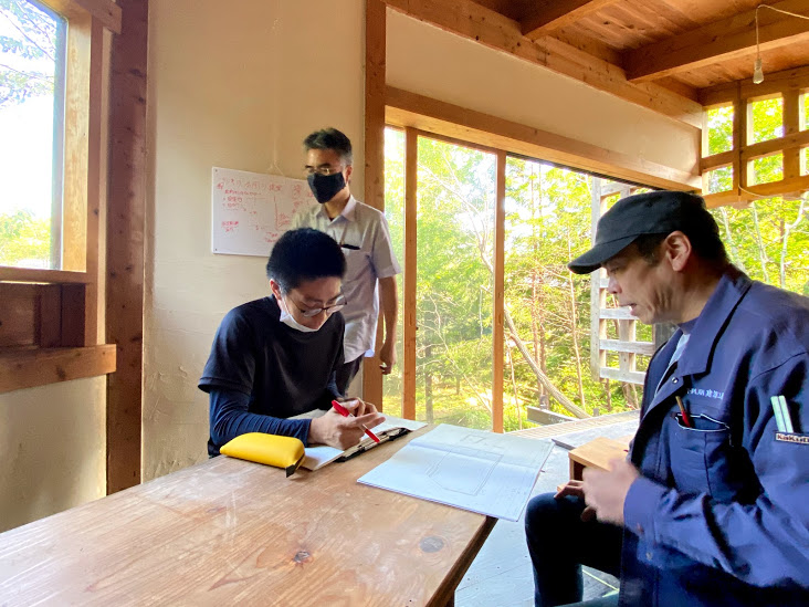 T-PLAN建築工房の田口さんに丁寧に教えてもらいながら、