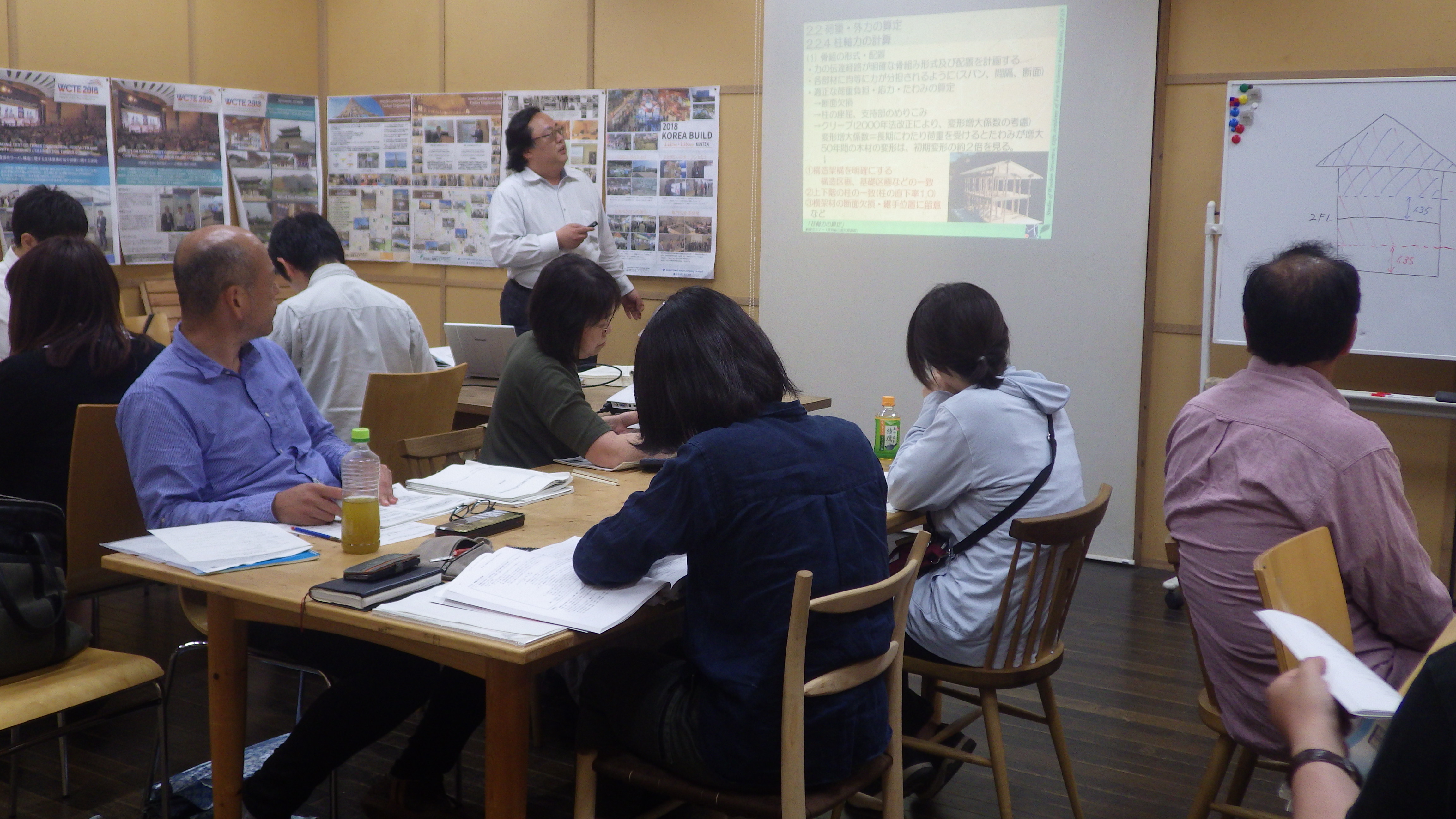実務者のスキルアップをする住育:専門技術者研修「木造建築の許容応力度計算演習」を開催しました。この一連の研修は全9回となっていて、モデルプランに基づいて構造計算をひととおり実施する研修となっています。夜活の一つとして、仕事帰りに「ひと勉強」、各回18:00~21:00に開催しています。
