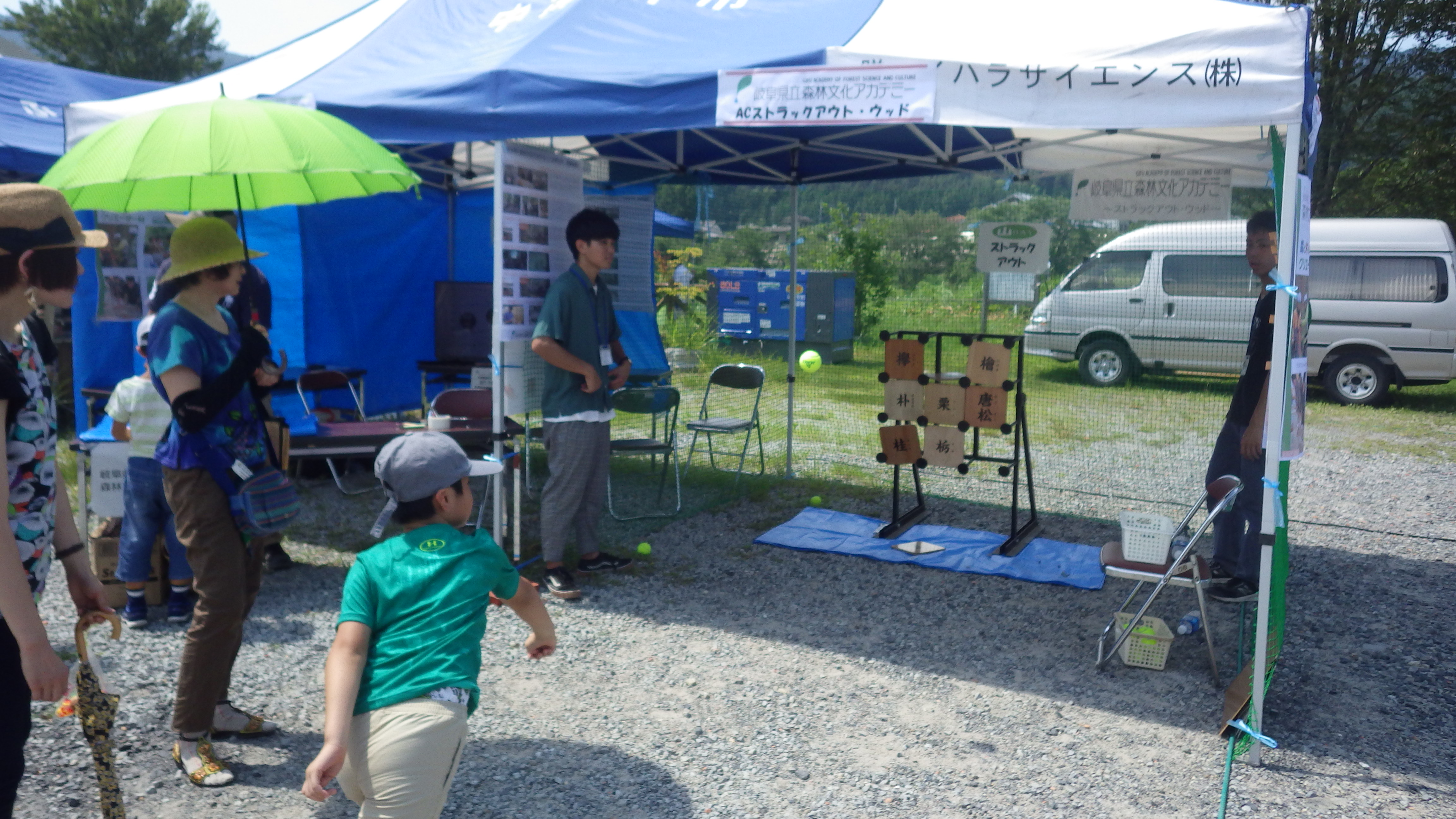 なかつがわ山の日イベント「山day」にて、森林文化アカデミーブースを出展しました。企画内容は「ACストラック・アウト ウッド」です。木製パネル9枚を利用したストラック・アウトです。