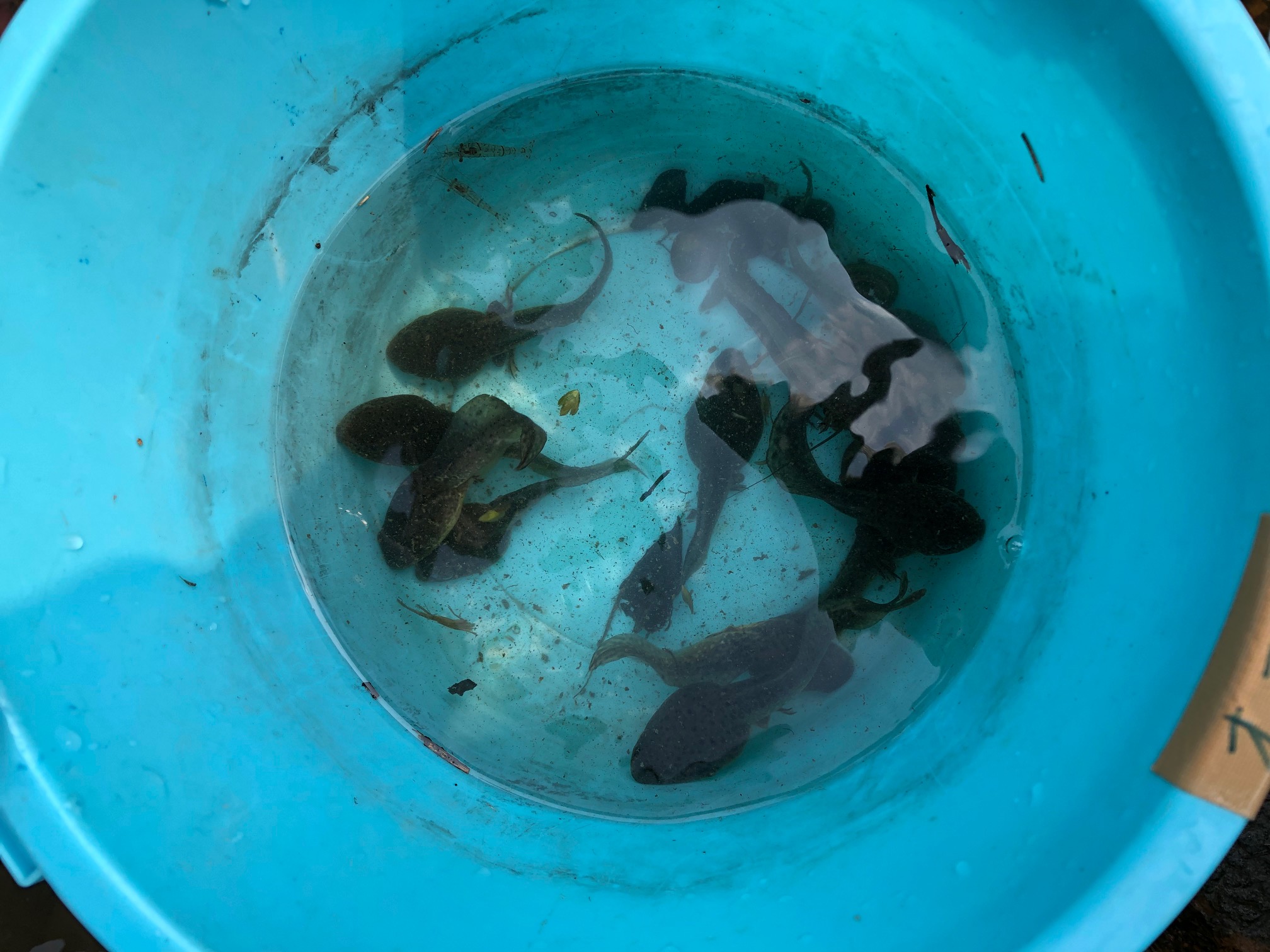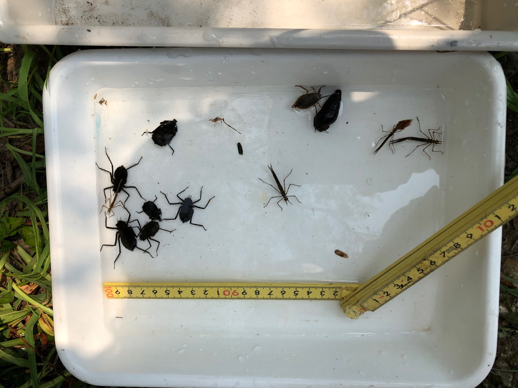 またコオニヤンマ、ハグロトンボなど複数種のトンボ類の幼虫(ヤゴ)やコオイムシなどの水生昆虫、アメリカザリガニやウシガエルの幼生などの外来生物も確認されました。