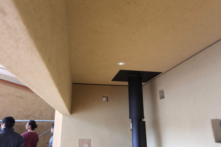 ……と良いところずくめですが、建築的に気をつけなくてはいけないのは「火事」です。火源があるわけですから、壁や天井を燃えにくくしなくてはいけません。建築基準法でもストーブの周りは内装制限がかかります。火は天井を伝って広がっていきますから、ストーブの直上は燃えにくいものにする必要があります。