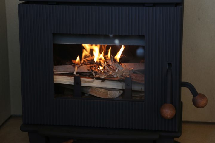 薪ストーブは国産「AGNI-CC」。岐阜県岐阜市で開発・製造されているものです。開発元は450年以上の歴史ある鋳物メーカー。日本で売られている薪ストーブは95%以上が外国製なのですが、「AGNI」は日本の森林事情に合わせ、針葉樹の間伐材を燃やしても問題ないように設計された、メイドイン岐阜の逸品です。