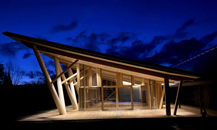 夜のmorinosです。建物が浮かび上がってつい近寄りたくなりませんか。さらにプログラムが運用され始めると内部の人の動きも相まってより吸い寄せらることと思います。