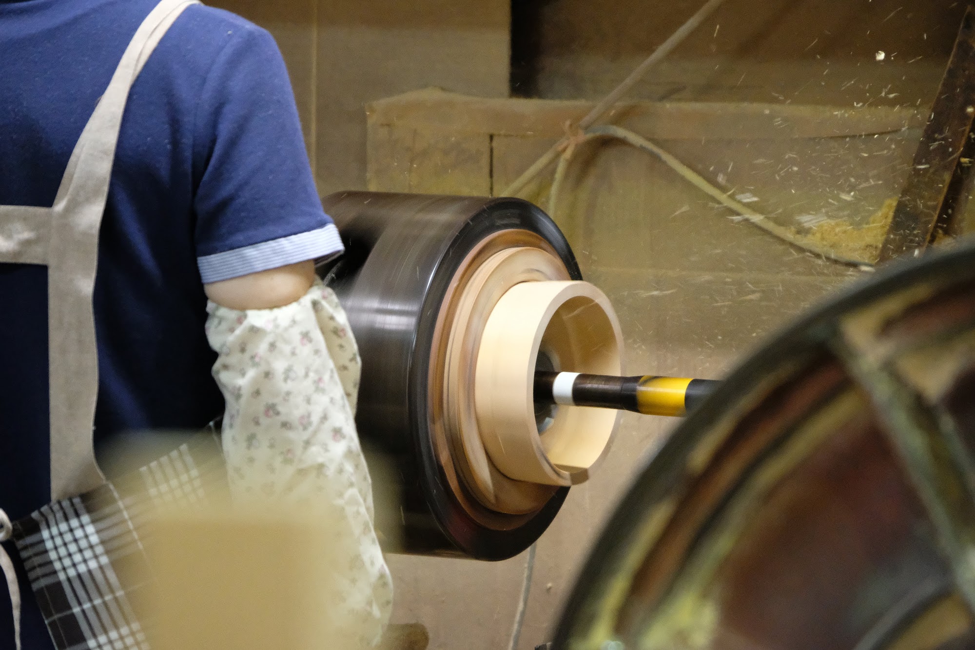 桶の外、内側それぞれ専用の機械で、なめらかに整えています。