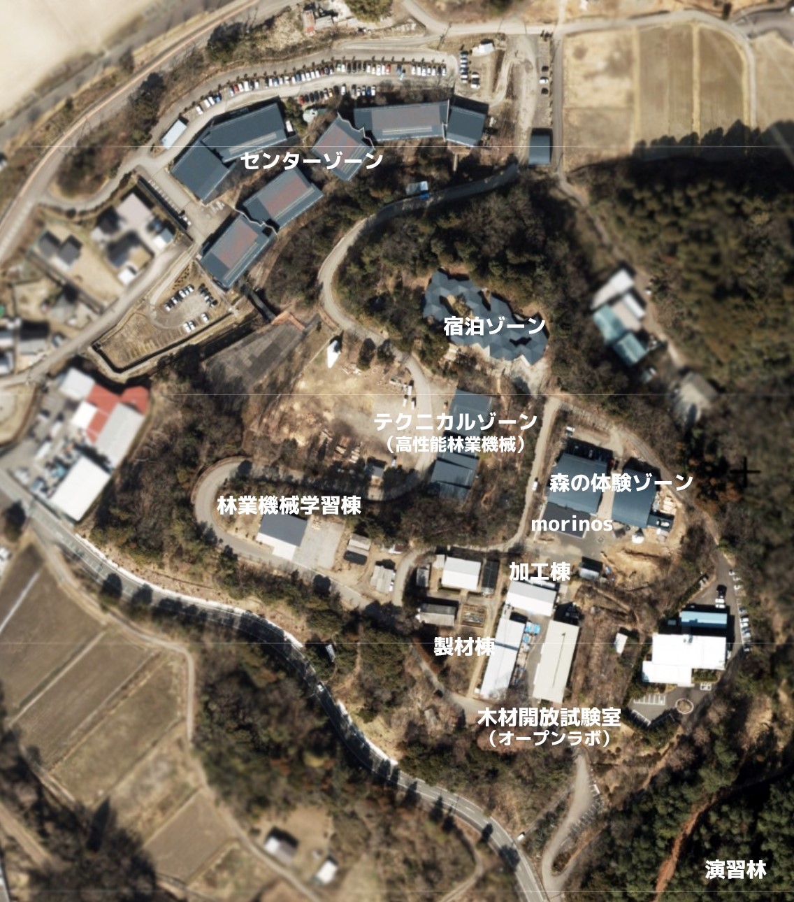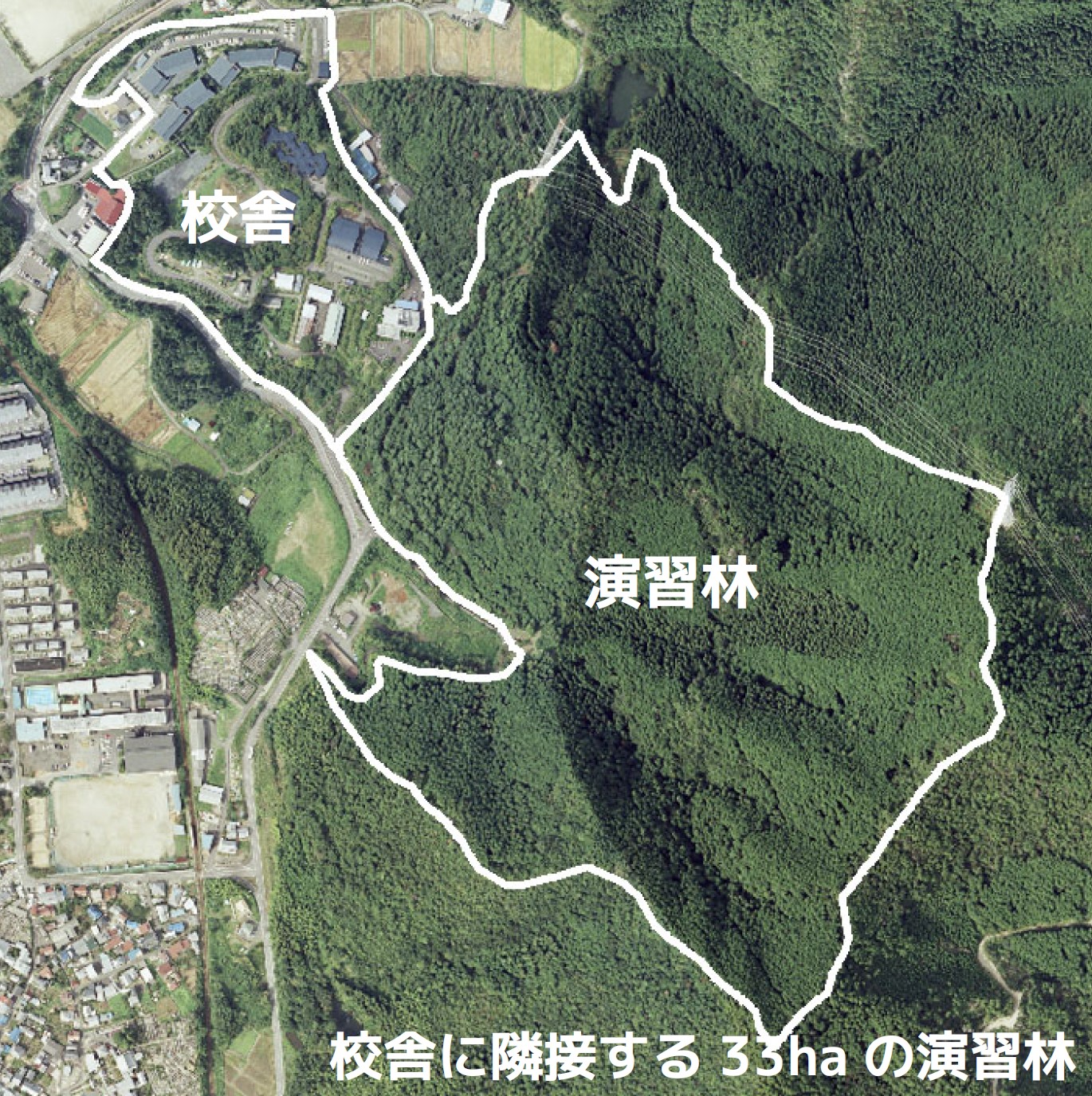 さらに視点を広げると校舎群に隣接する33haの演習林が見えてきます。