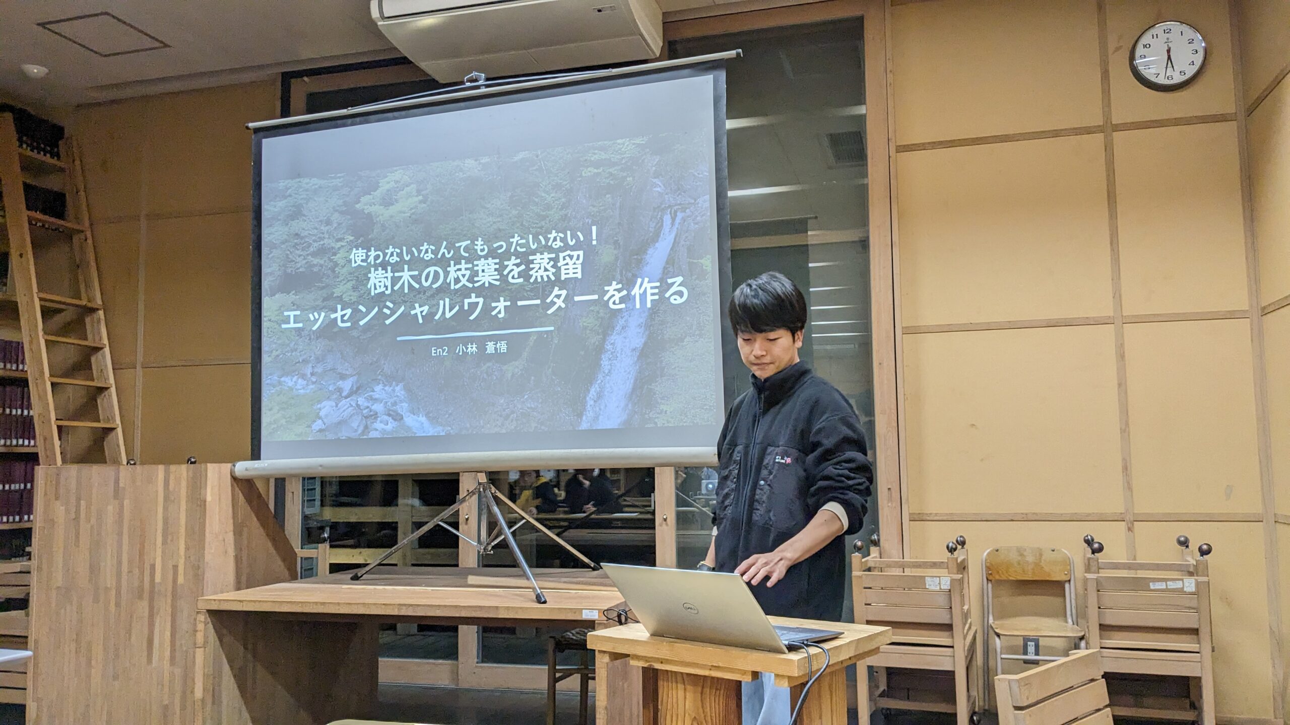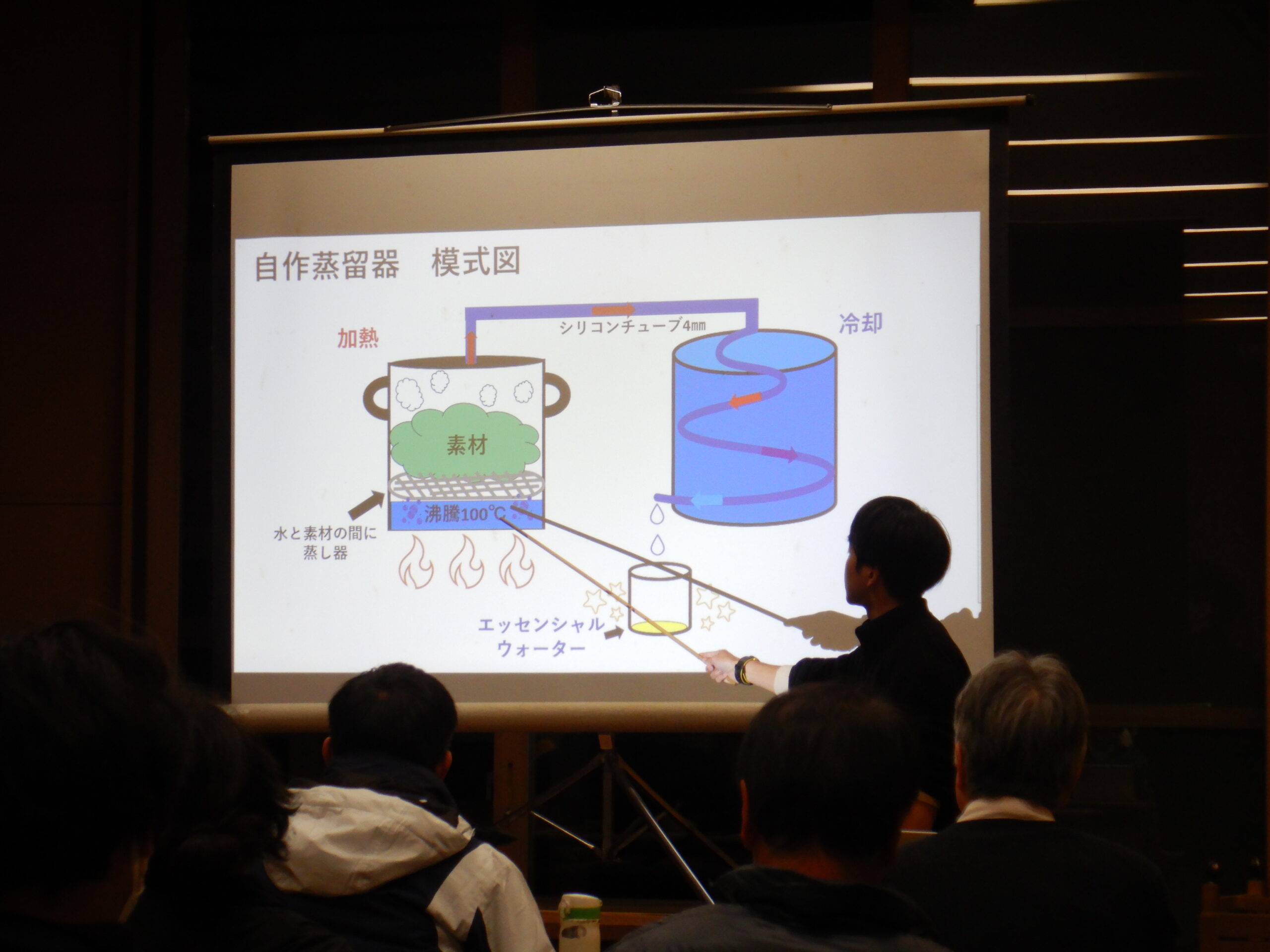 トリを飾ったのは小林さんの発表「使わないなんてもったいない!樹木の枝葉を蒸留 エッセンシャルウォーターを作る」です。