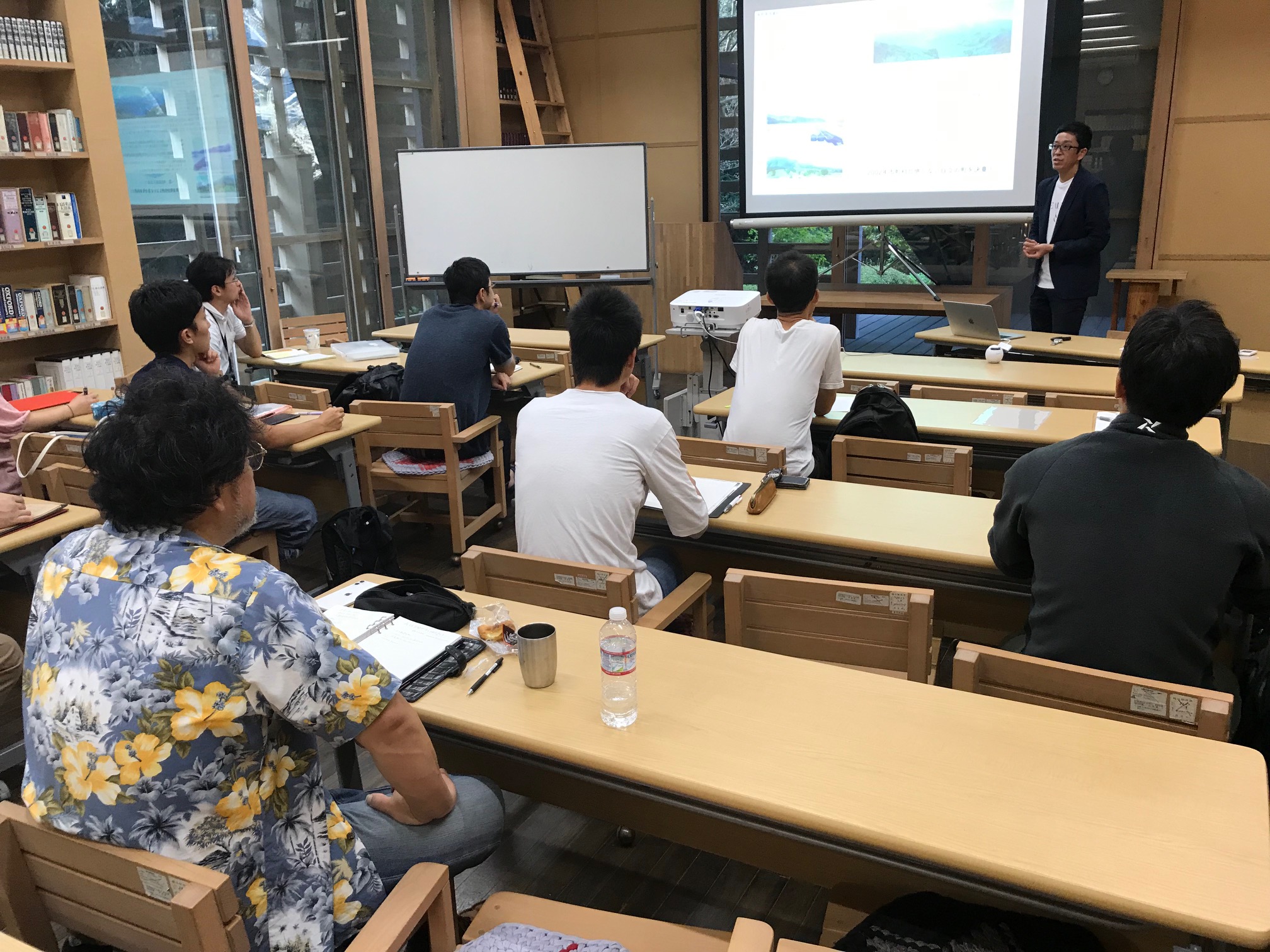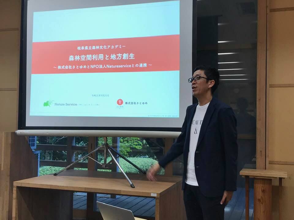 「森林空間利用の事業化」のゲスト講師として、長野県信濃町から浅原武志さんをお迎えしました。浅原さんは森林セラピー基地の第1期指定を受けた信濃町の活動を20年近くけん引してきた方です。大手電機メーカーから町役場へ転職。現在は ㈱さとゆめ取締役、NPO法人Nature Service共同代表として全国的に活躍されています。
