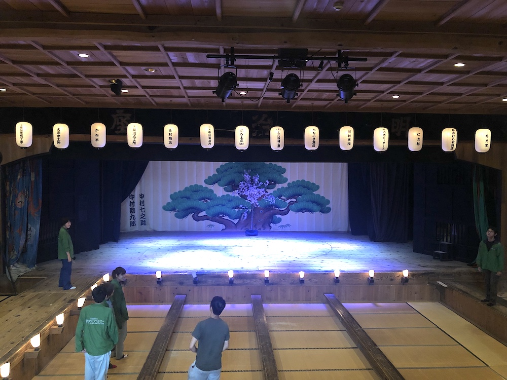 岐阜県重要有形民族文化財「かしも明治座」では、樹齢400年ものモミの巨木の梁が支える大迫力の空間を見学しました! 明治座は、木とともに生きる加子母の人々に愛され、今もなお建てられた明治27年のままの姿を保ち続けています。