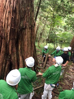 初日は地元のガイドさんに案内してもらい、伊勢神宮の式年遷宮で使用される御神木を育てる国有林「裏木曽古事の森」を見学しました。