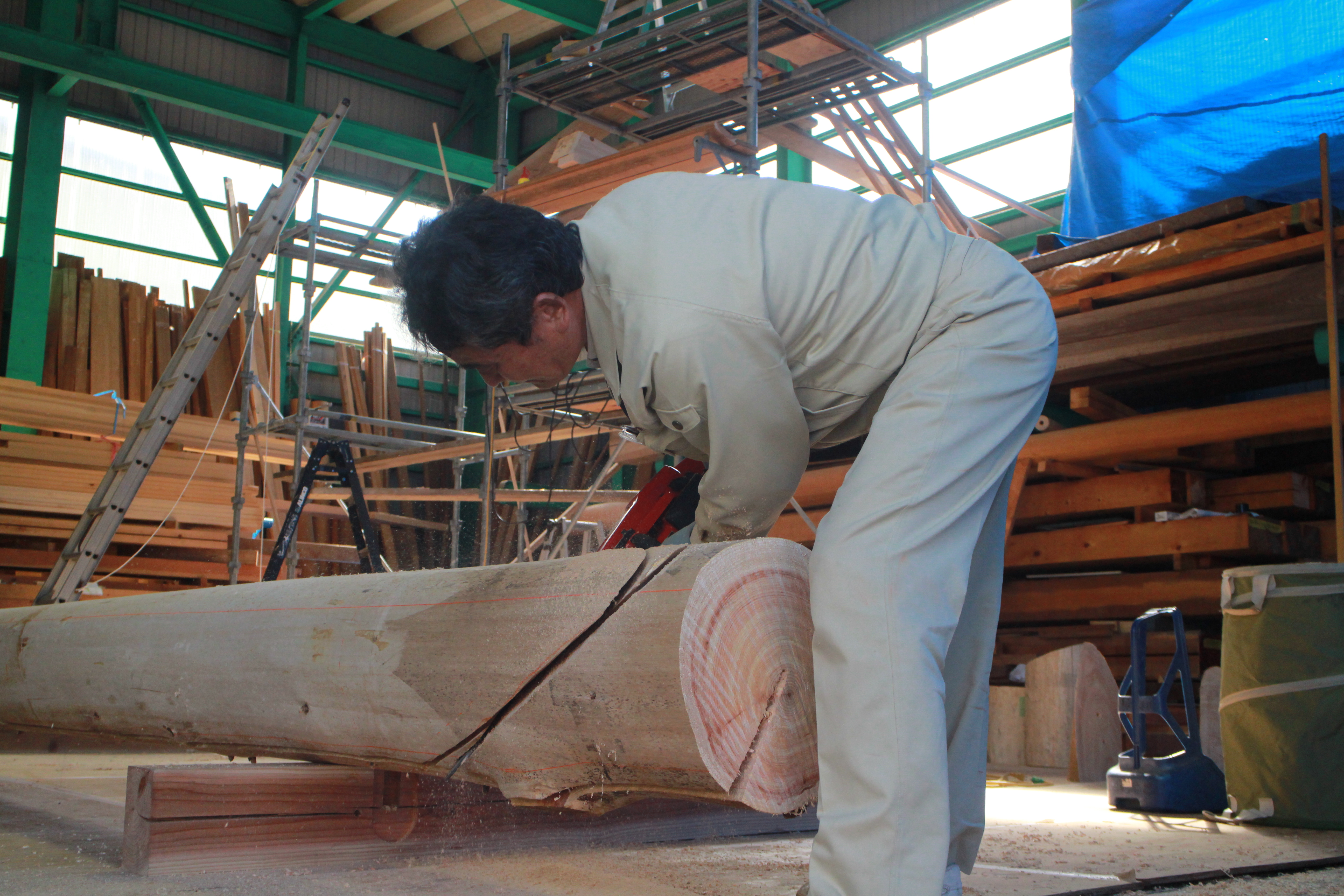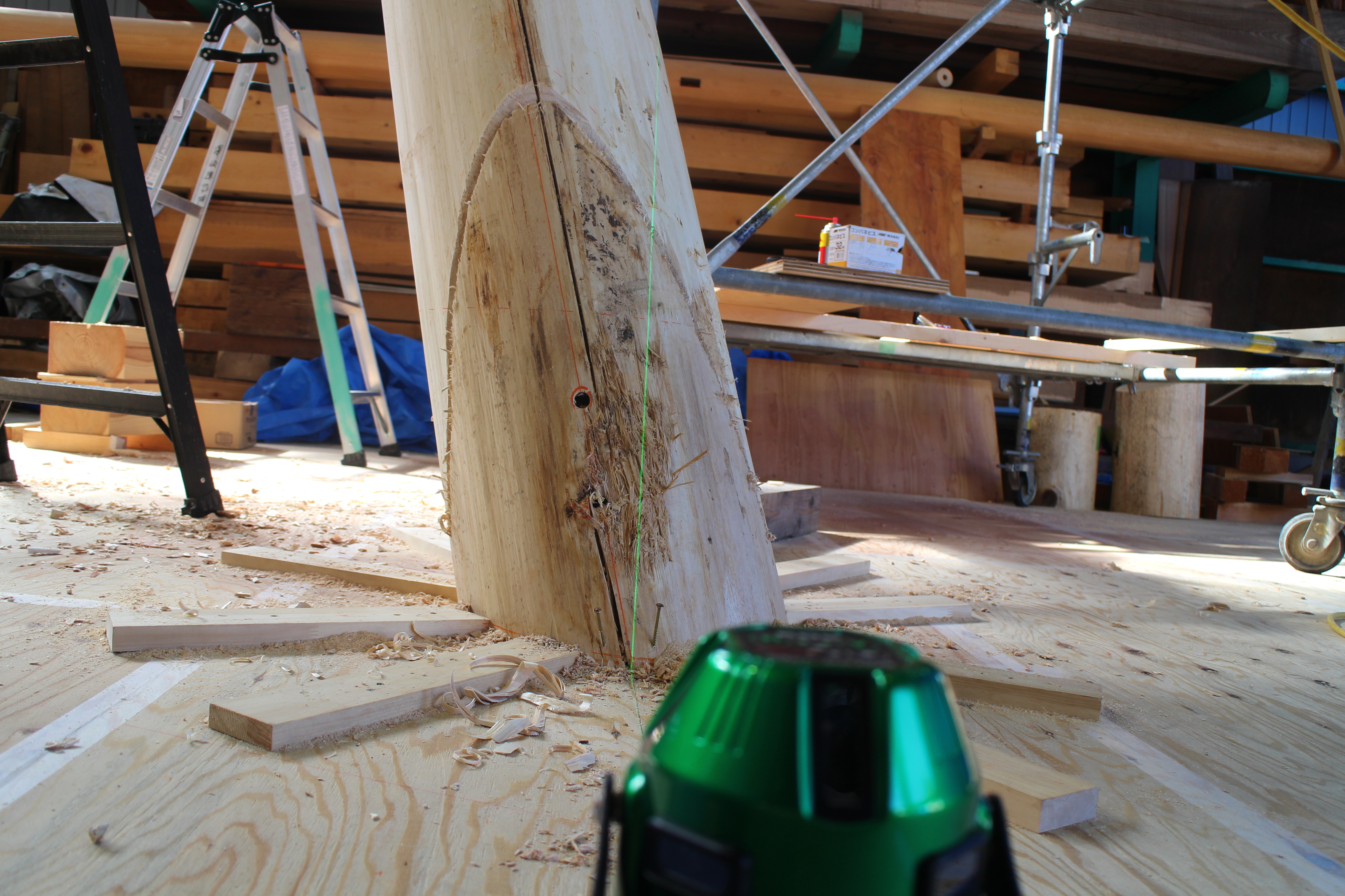 森林総合教育センター センターハウス丸太柱の加工