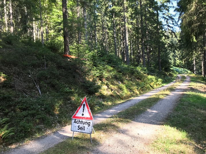 サマーセミナー4日目。Bグループは、シュヴァルツヴァルト(黒い森)北部のバーデン=ヴュルテンベルク州(BW州)州有林で、高性能林業機械を使っての伐採・造材・搬出作業を行なっている現場を見学しました。