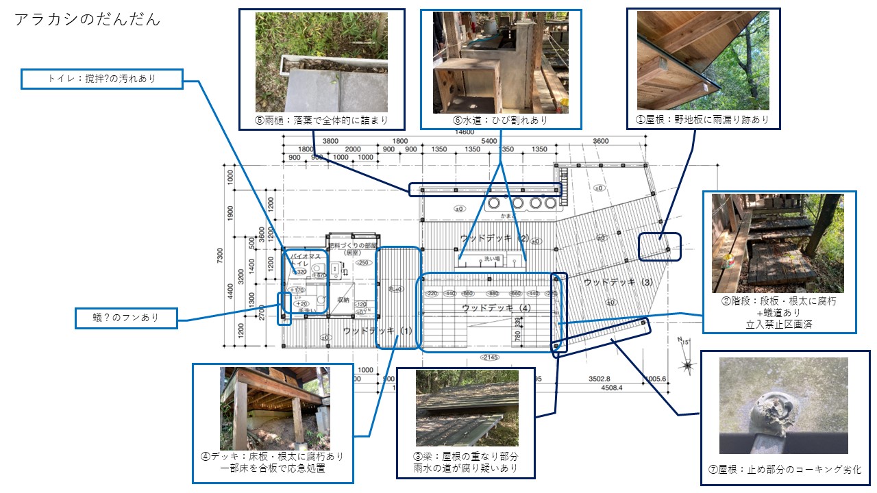 ゼミ室に持ち帰って、現状図面と課題の整理、対策案を検討します。