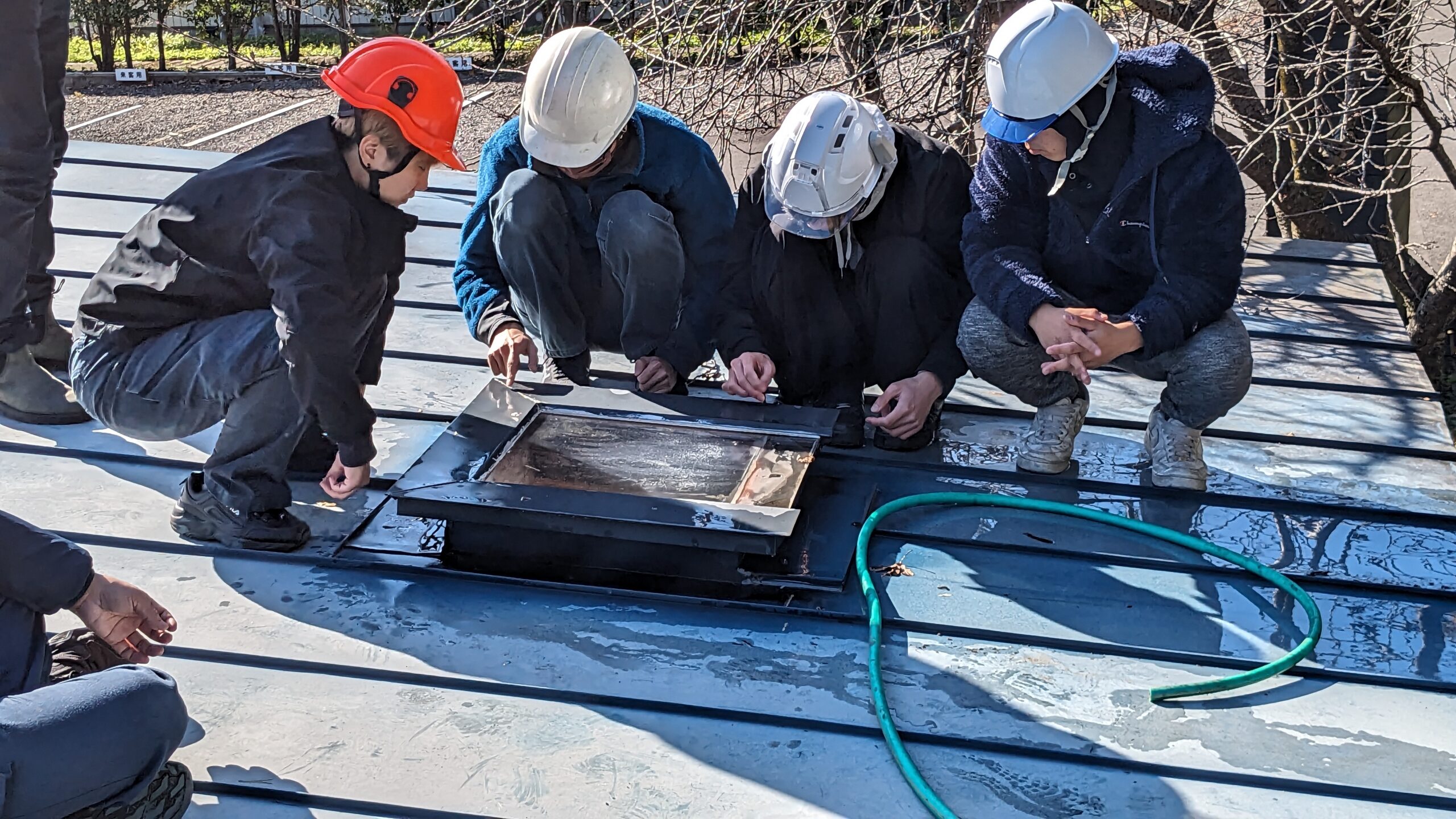 一通り散水試験を行い、4カ所からの浸水が確認できました。