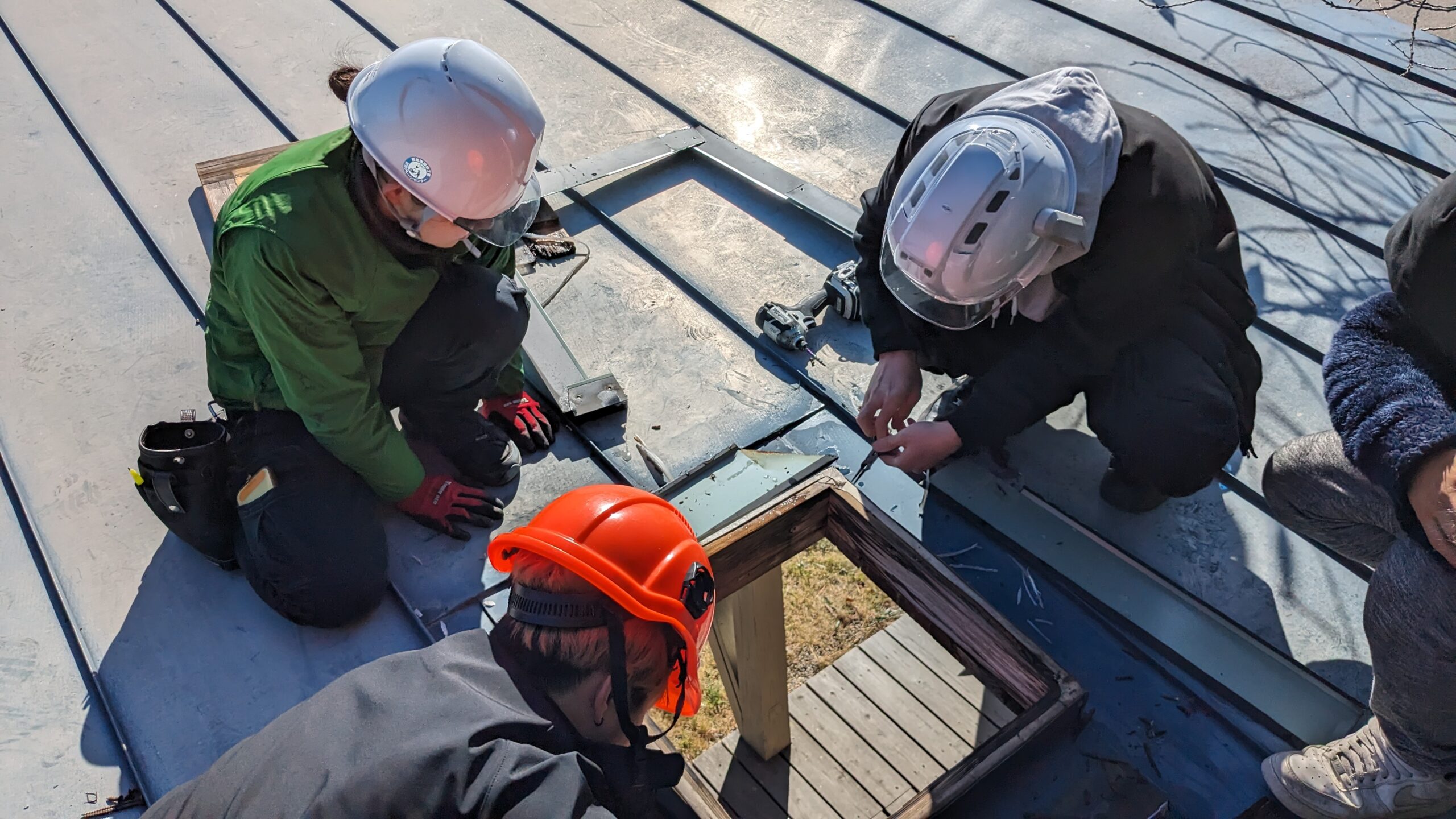 過去にもメンテで修繕しいますが、少し複雑な屋根のため課題が残っていました。今回は、気になる隙間をコーキングで埋めています。