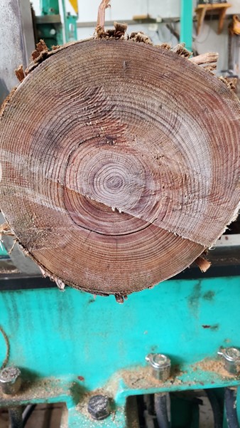 写真1 今回最初に挽いた材。立っている間に損傷をして腐ってしまったと思われる。