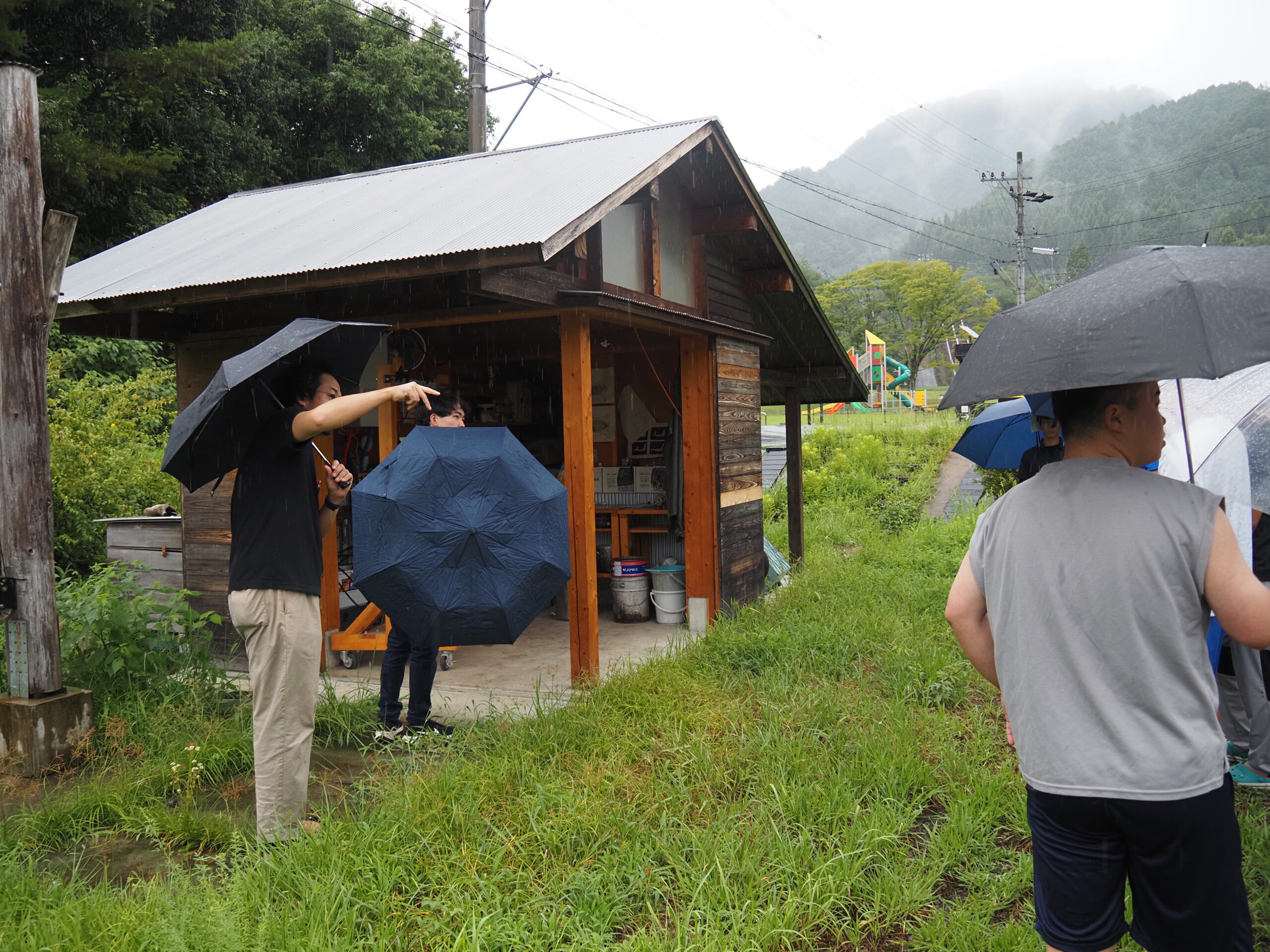 まずは、今回のお題である自力建設「里山獣肉学舎」を見学します。