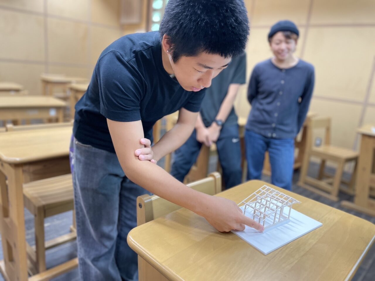 エンジニア科の授業「木造建築入門」にて、建築模型の製作を体験してもらいました。