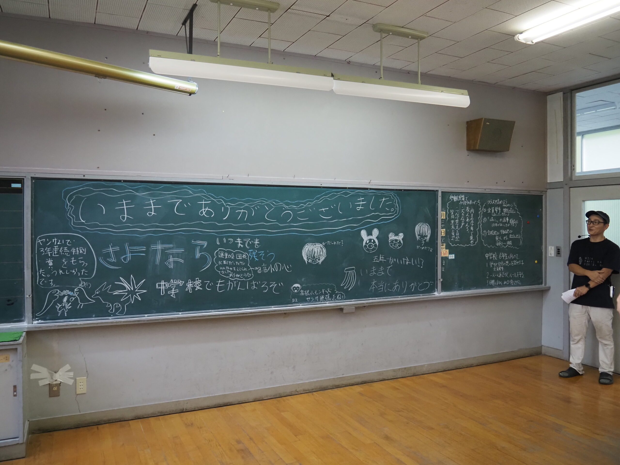 黒板のメッセージ等々、閉校式時点の空間が「保存」、ウイスキー的に言えば「貯蔵」されています。