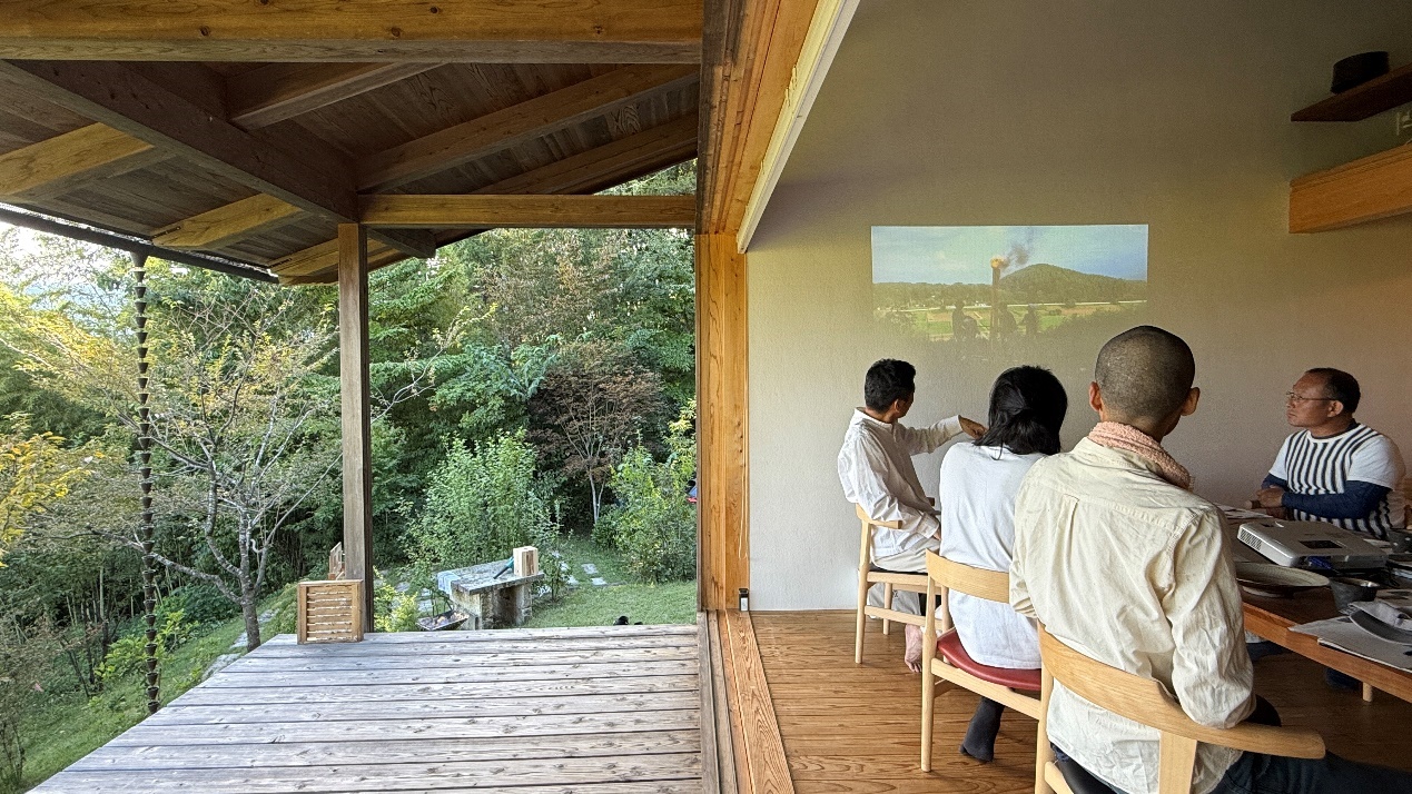 安井先生と皆さんの自己紹介から授業が始まりました。富士山を一望できる開放的な木造建築の空間で、心静かに、そして自然とリラックスした気持ちに惹きつける授業を受けて、非常に貴重な体験でした。