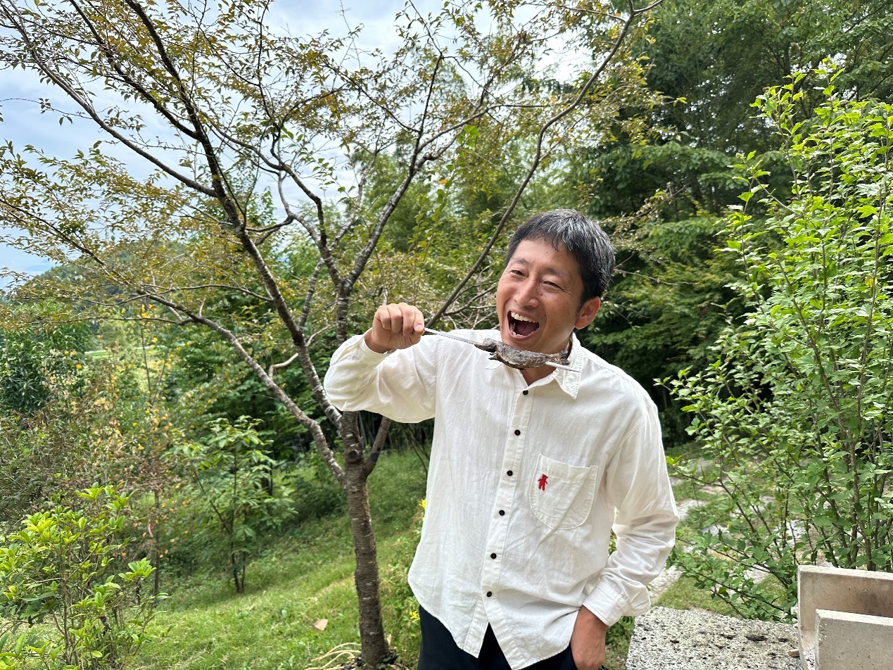 今年、成功点火したスウェーデントーチは、特別な用途で使われました。それは、匠先生が釣り上げたアマゴを焼くためです。早朝、皆が起きる前の短時間で釣り上げられたもので、さすがです。