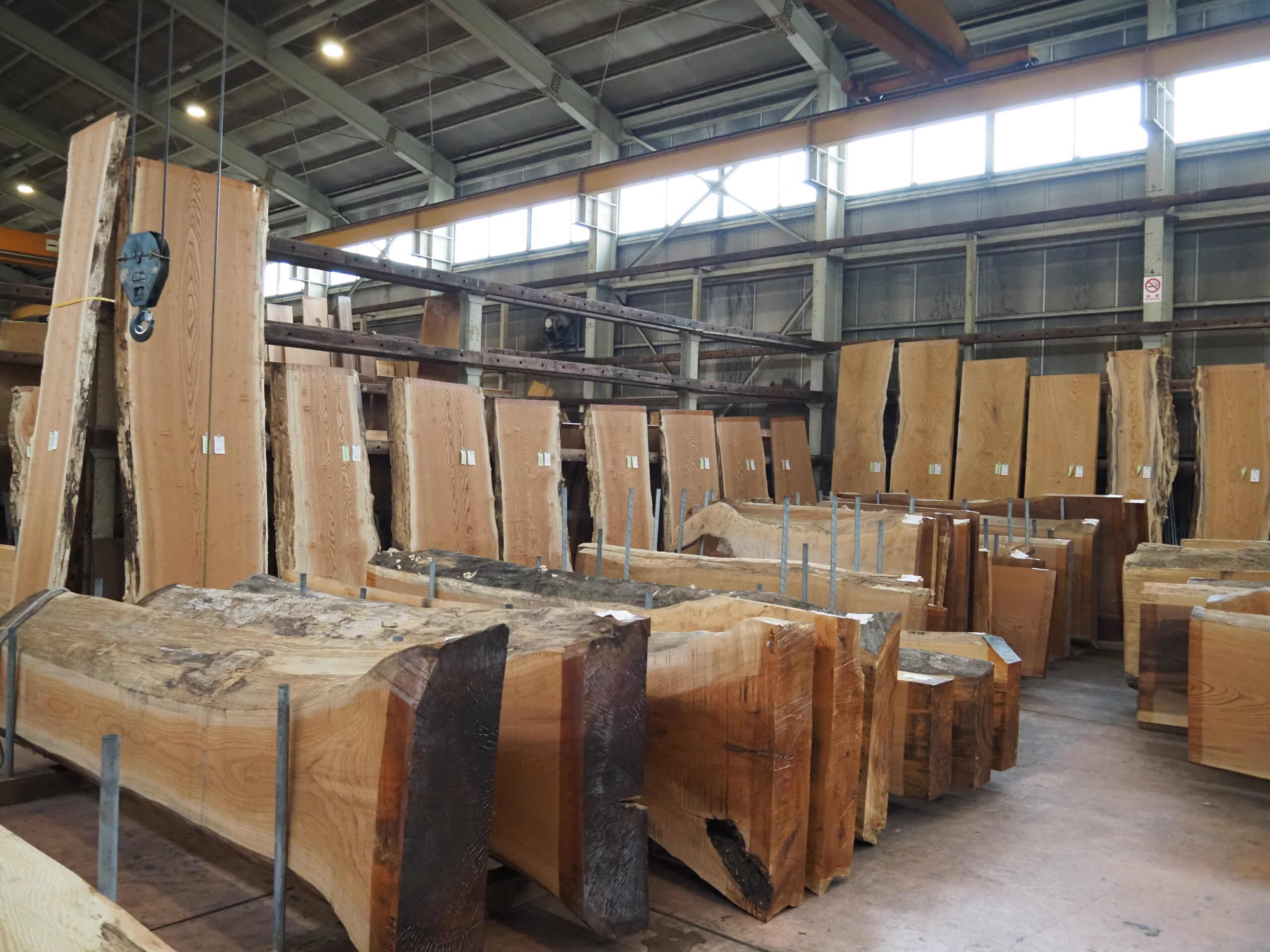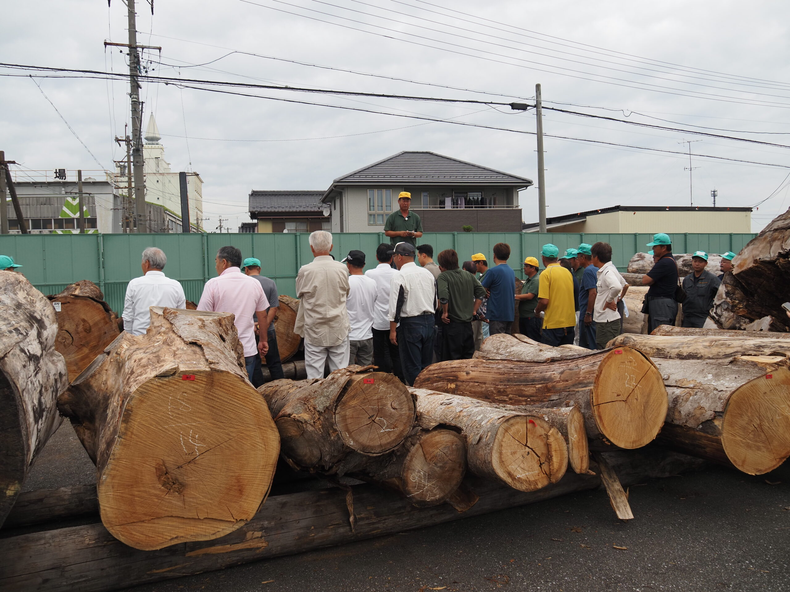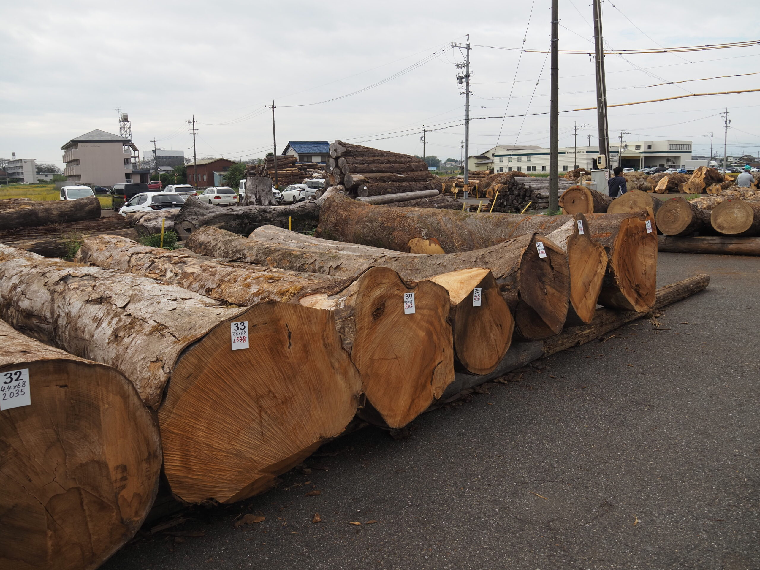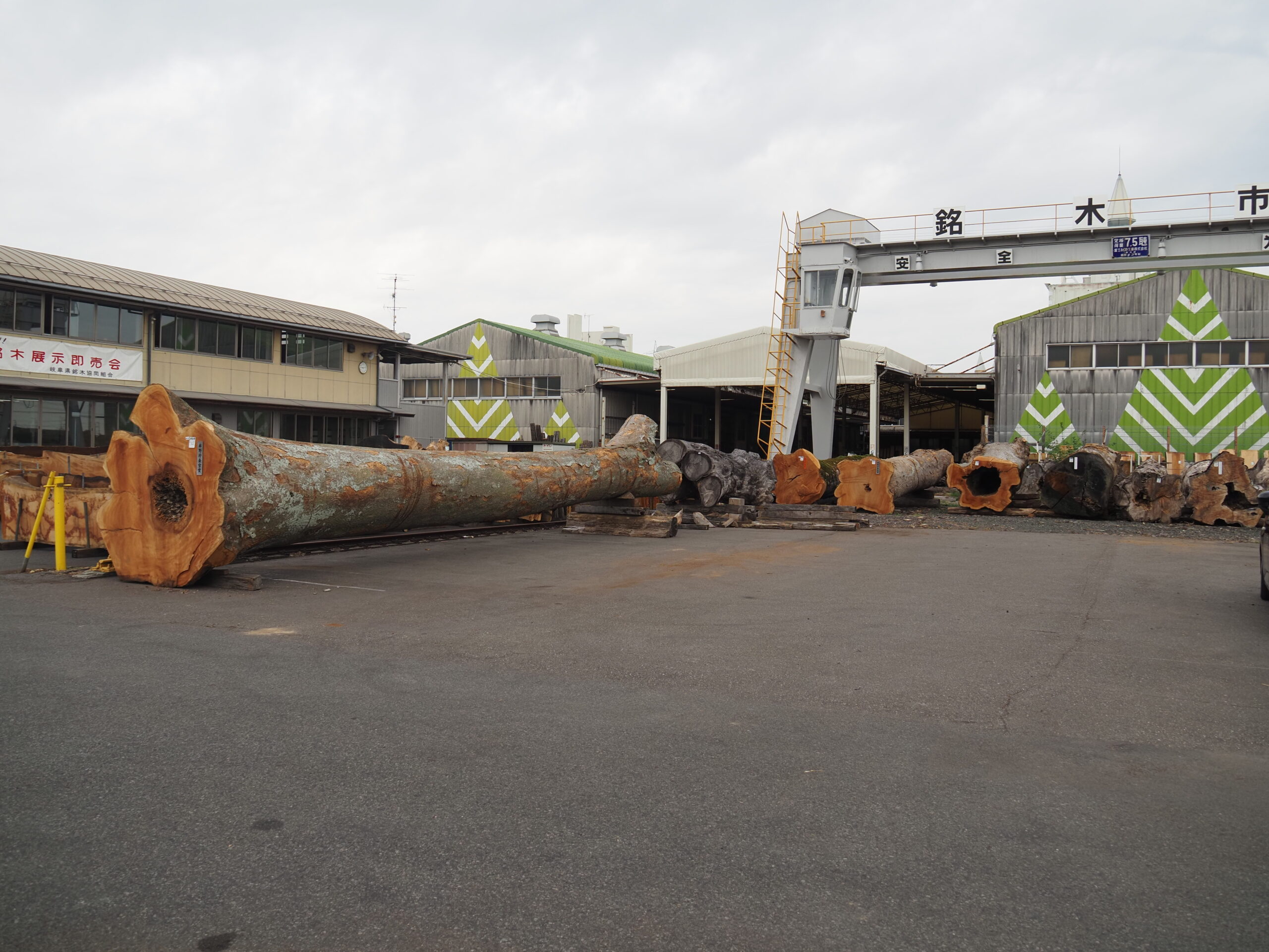 日本一大きい銘木市場と知られる同組合、あらゆる樹種の原木と製品が集まります。