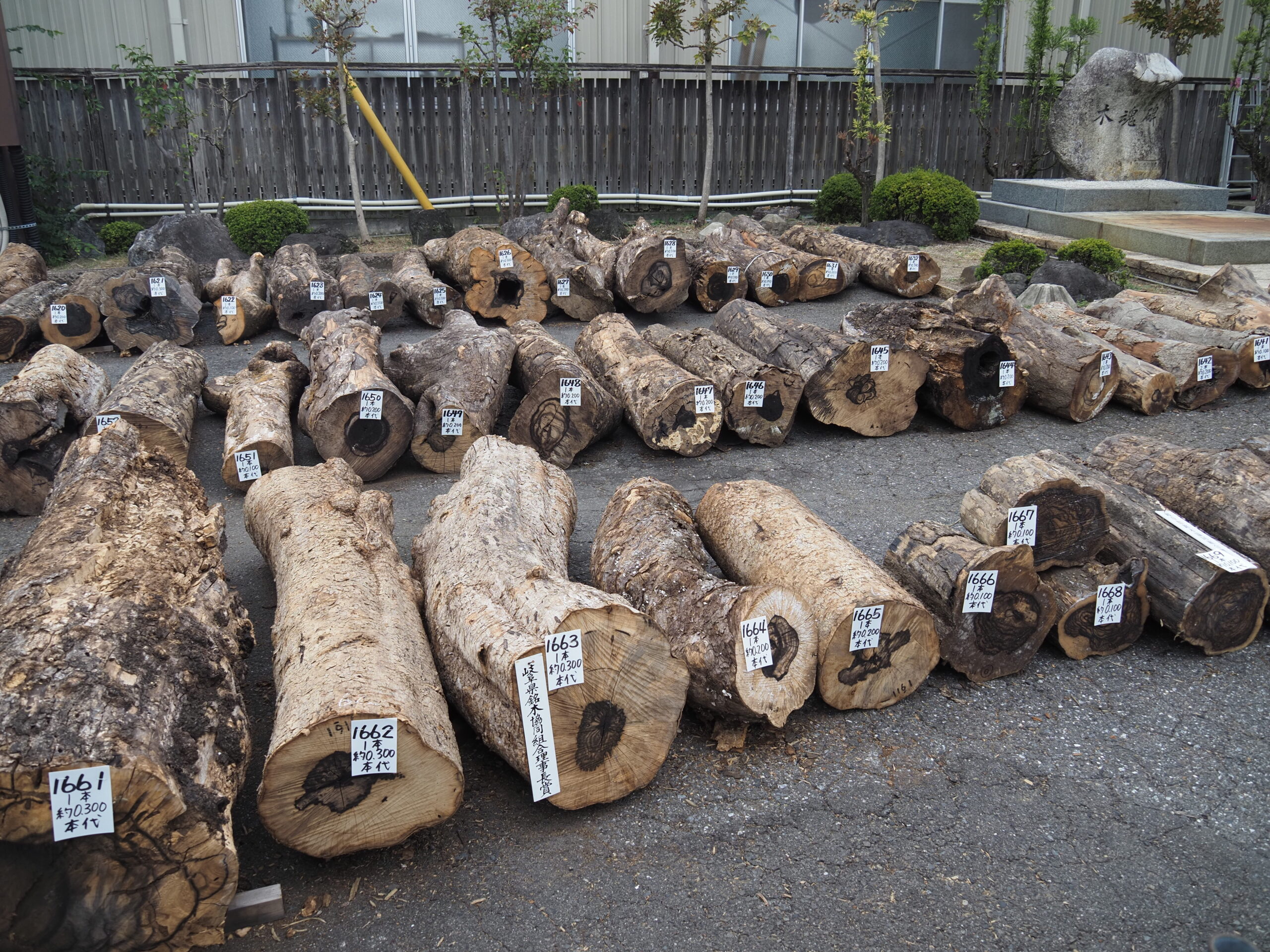 市場を見学していると、何となく「買い手はこういう部分を評価しているのかな」と思うこともあるのですが・・・(素人の私からすれば)銘木の値段の基準は、正直なところ良くわかりません。