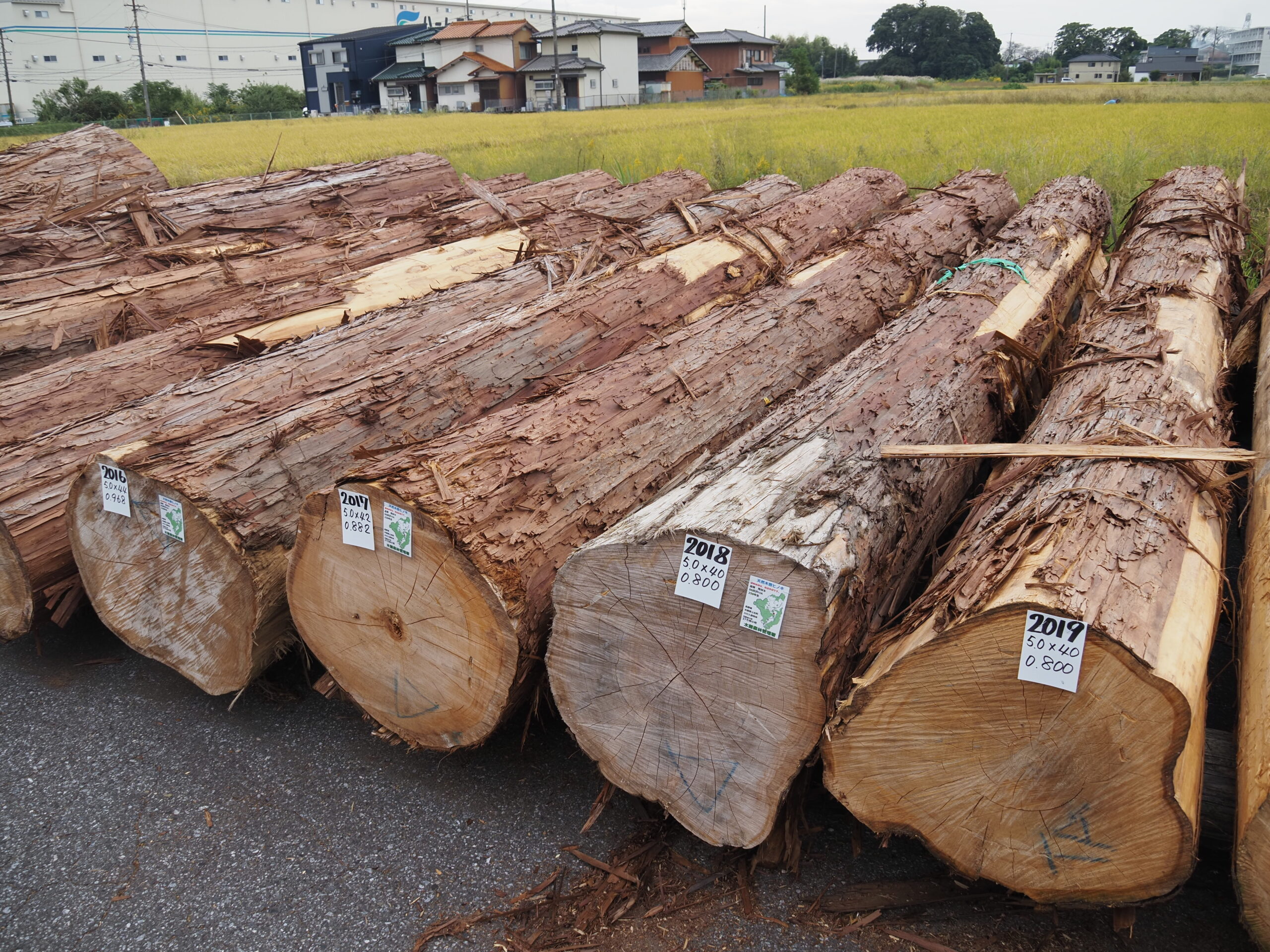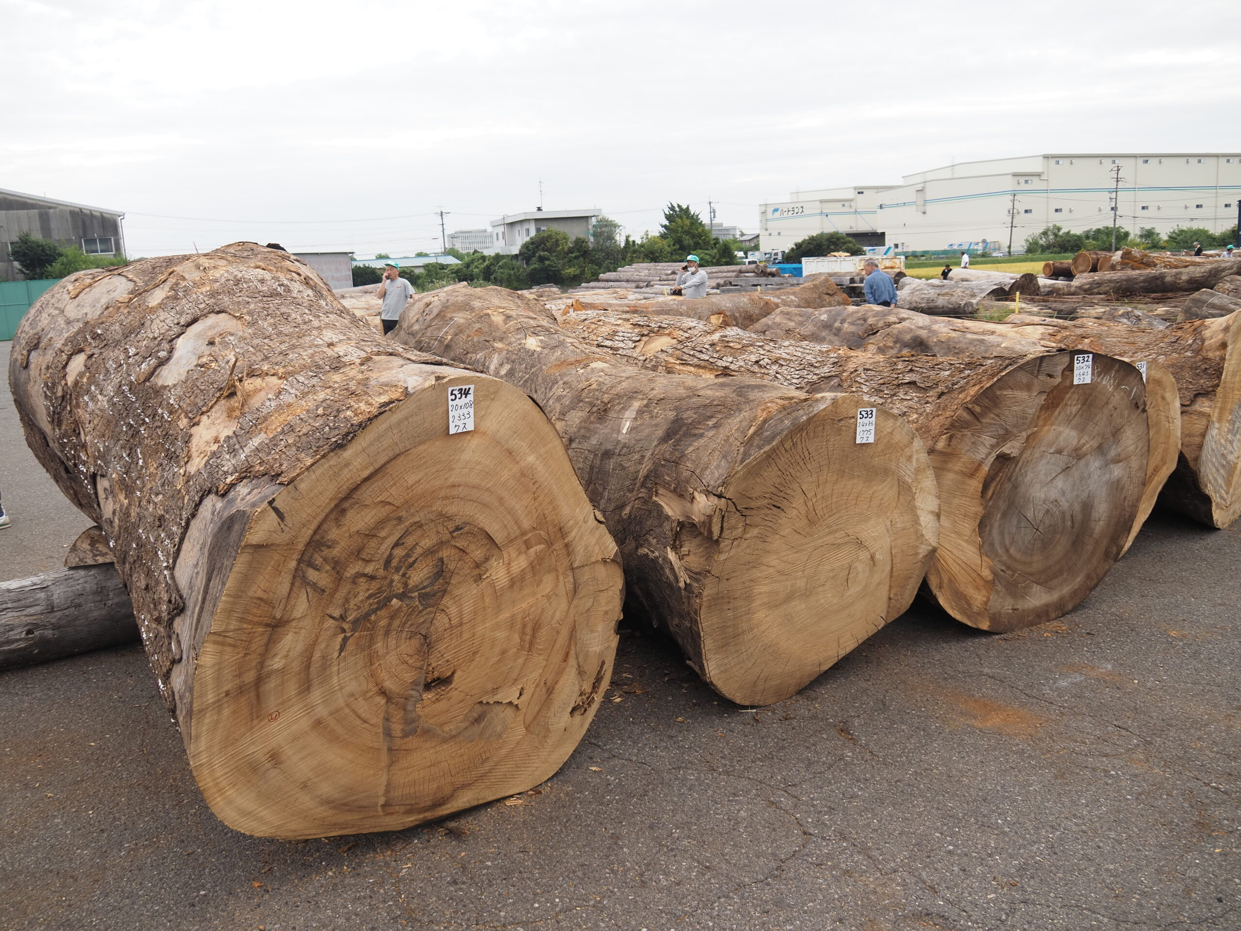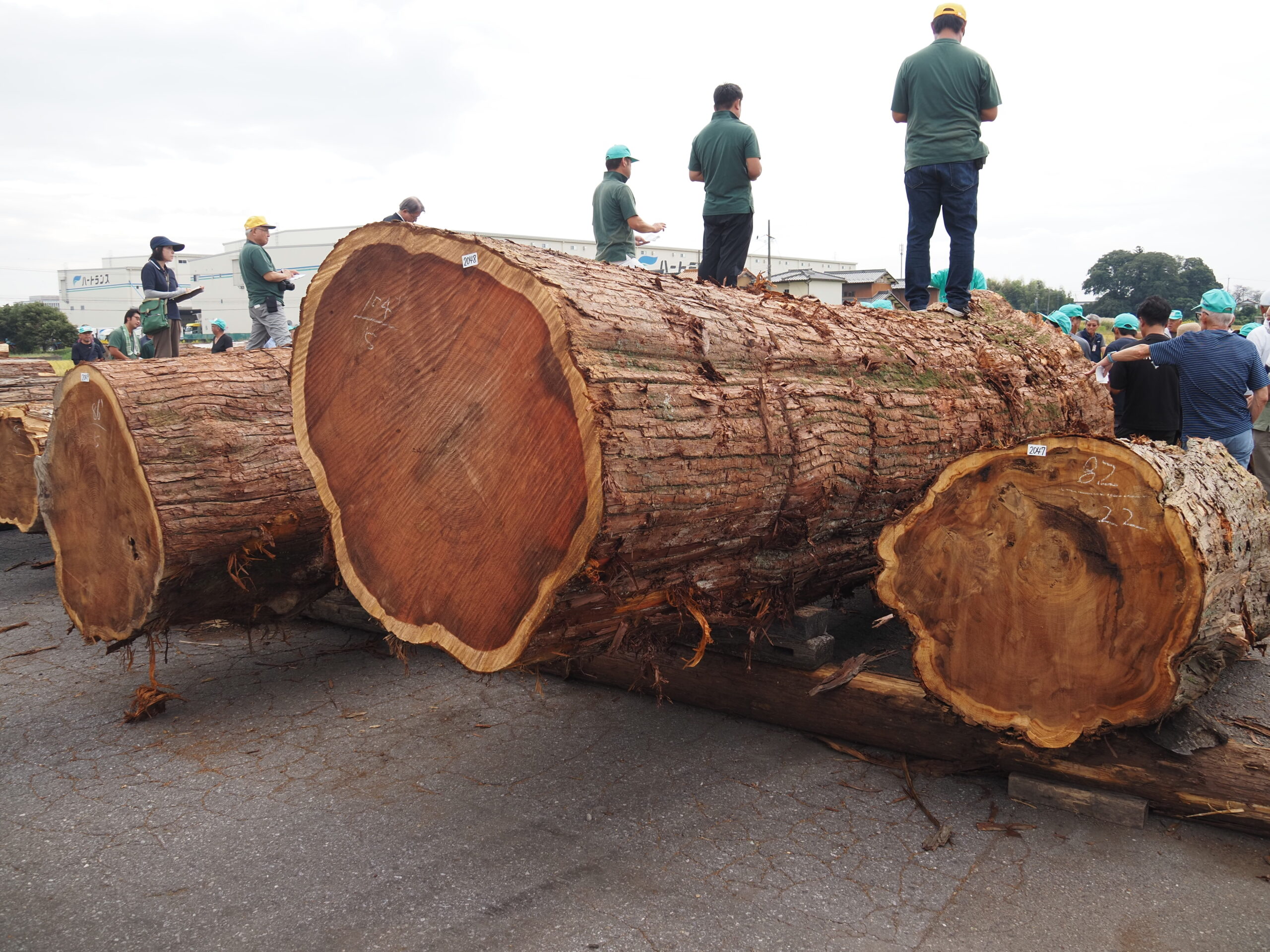 スギについては、写真中央の巨大な原木が17万円/㎥で落札されていましたが、