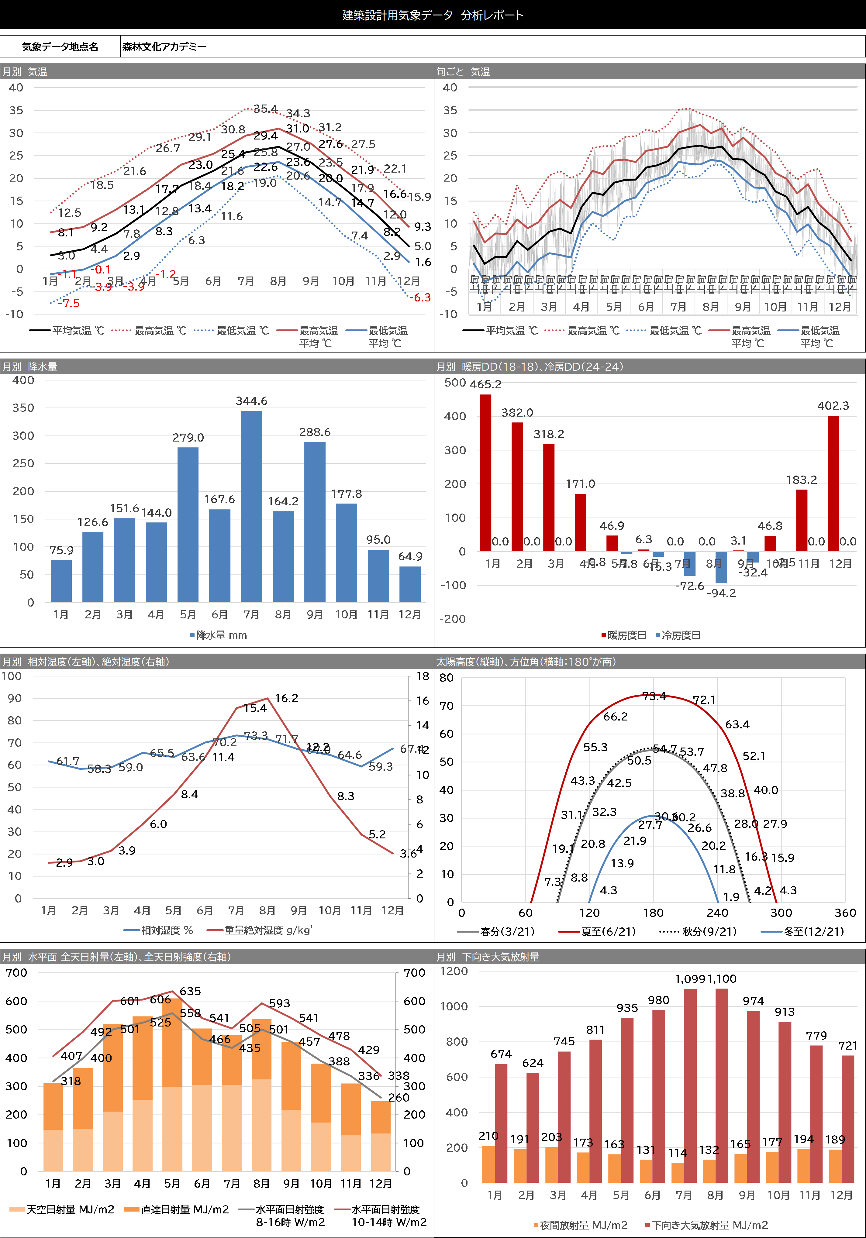 建築設計用気象データは、建築研究所「ArcClimate気象データ」研究に基づいて製作されています。