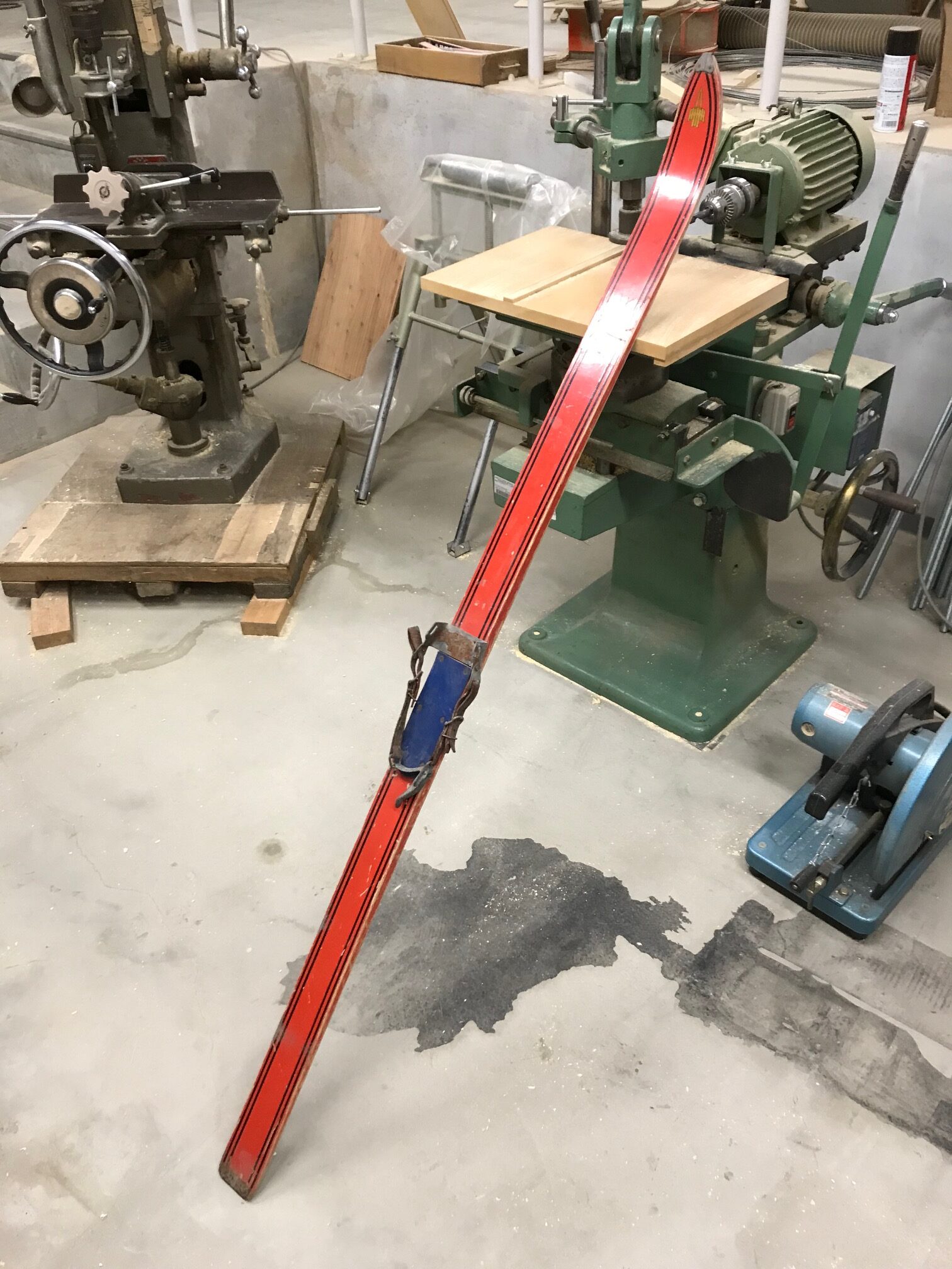 元は5~60年前?の子供用スキーで、劣化もあり投げ売られていたのを救出しました。