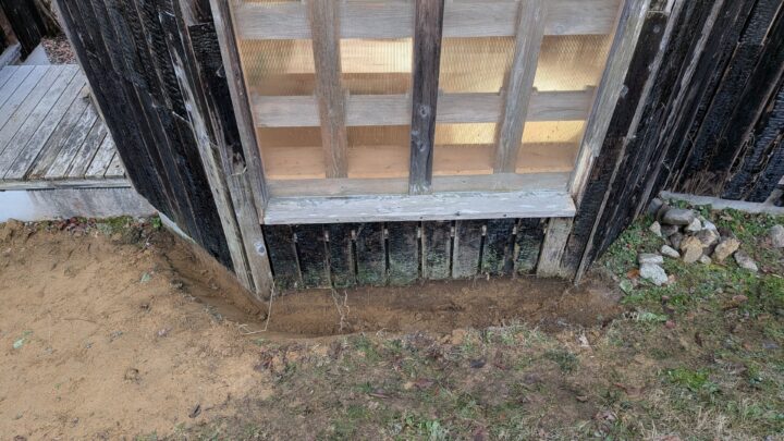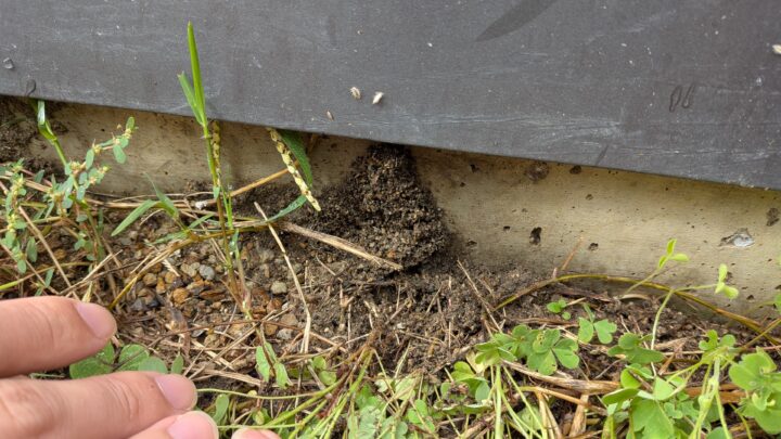 最新の24期木材乾燥庫の「栞」ですが、すでにシロアリの形跡を発見。蟻土が基礎コンクリートに盛り上がっています。