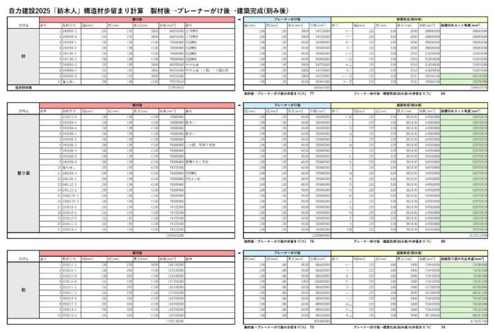 一本一本製材後の寸法から、プレーナー掛け、刻み後の寸法を出して算出しています!