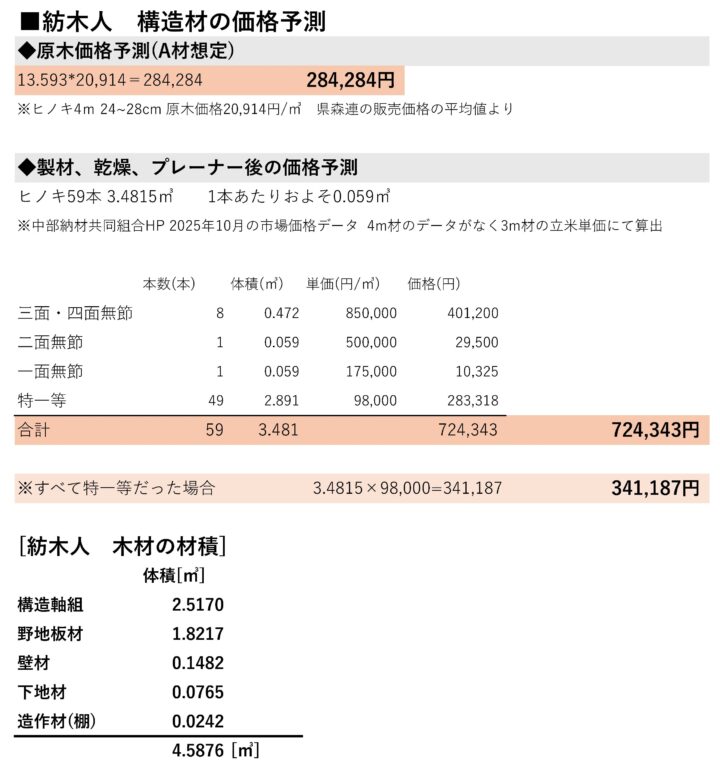 「紡木人」山の木が建築になるまで(構造材の歩留まりと金額予測)自力建設2025