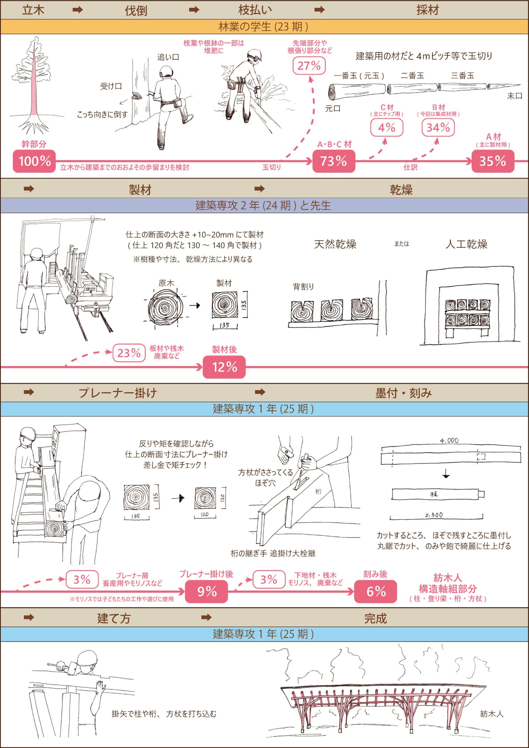 山の木が建築になるまでの流れと歩留まり 紡木人ver.