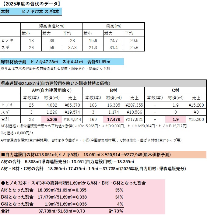 こちらは紡木人で使用した木のデータではなく、次年度(2026年度)以降に自力建設等で使われる予定の調査・皆伐データになります。