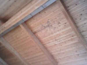森の情報センターの天井(無断熱・OSB合板のみ・空気層なし)を撮影してみました。