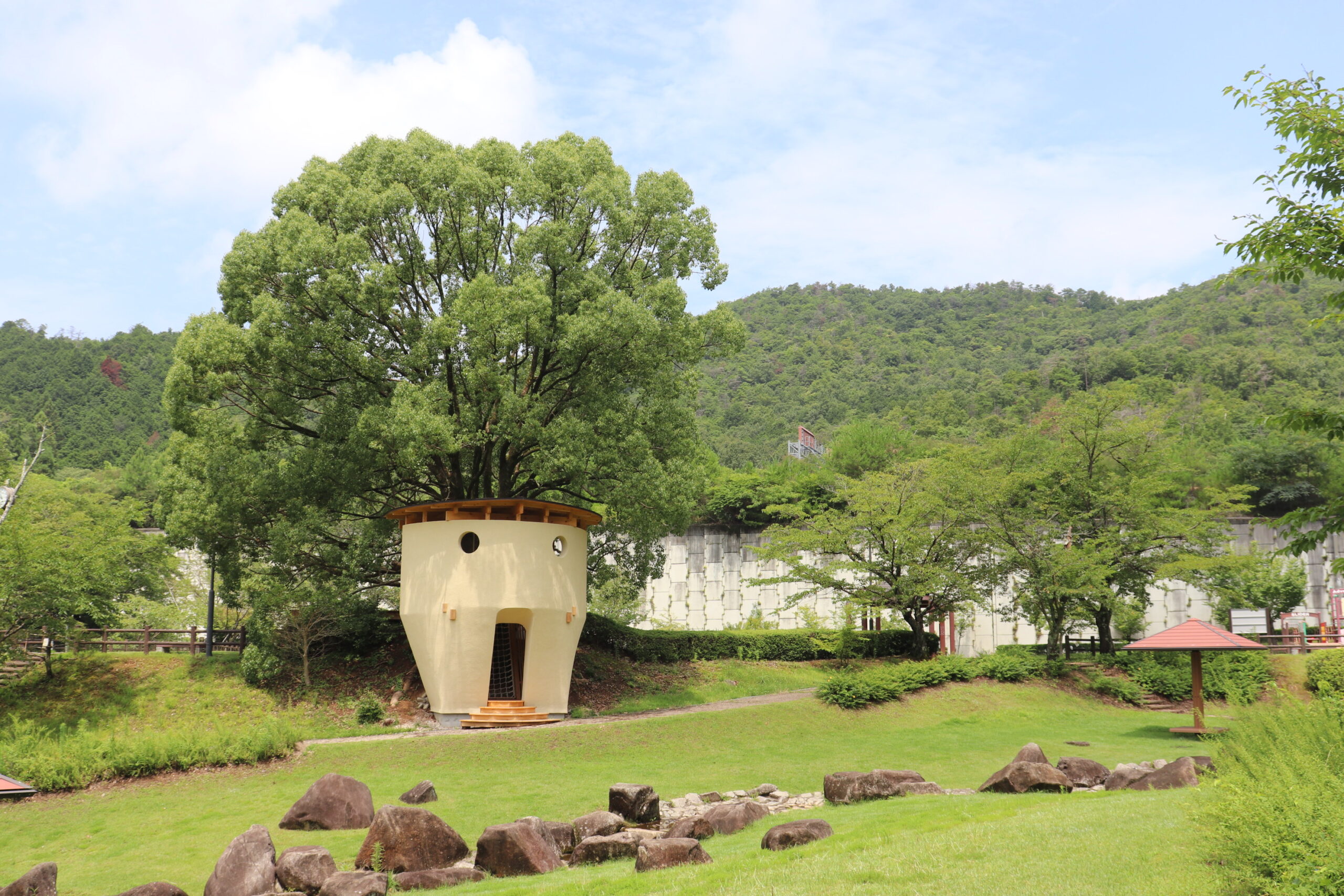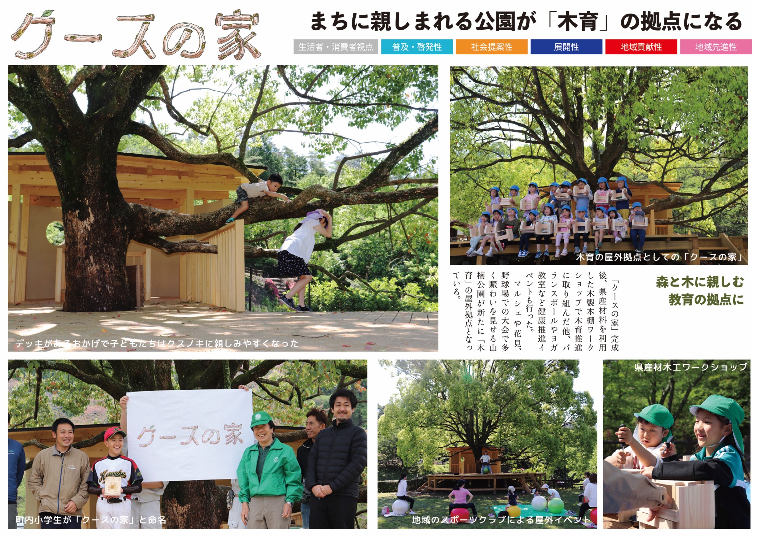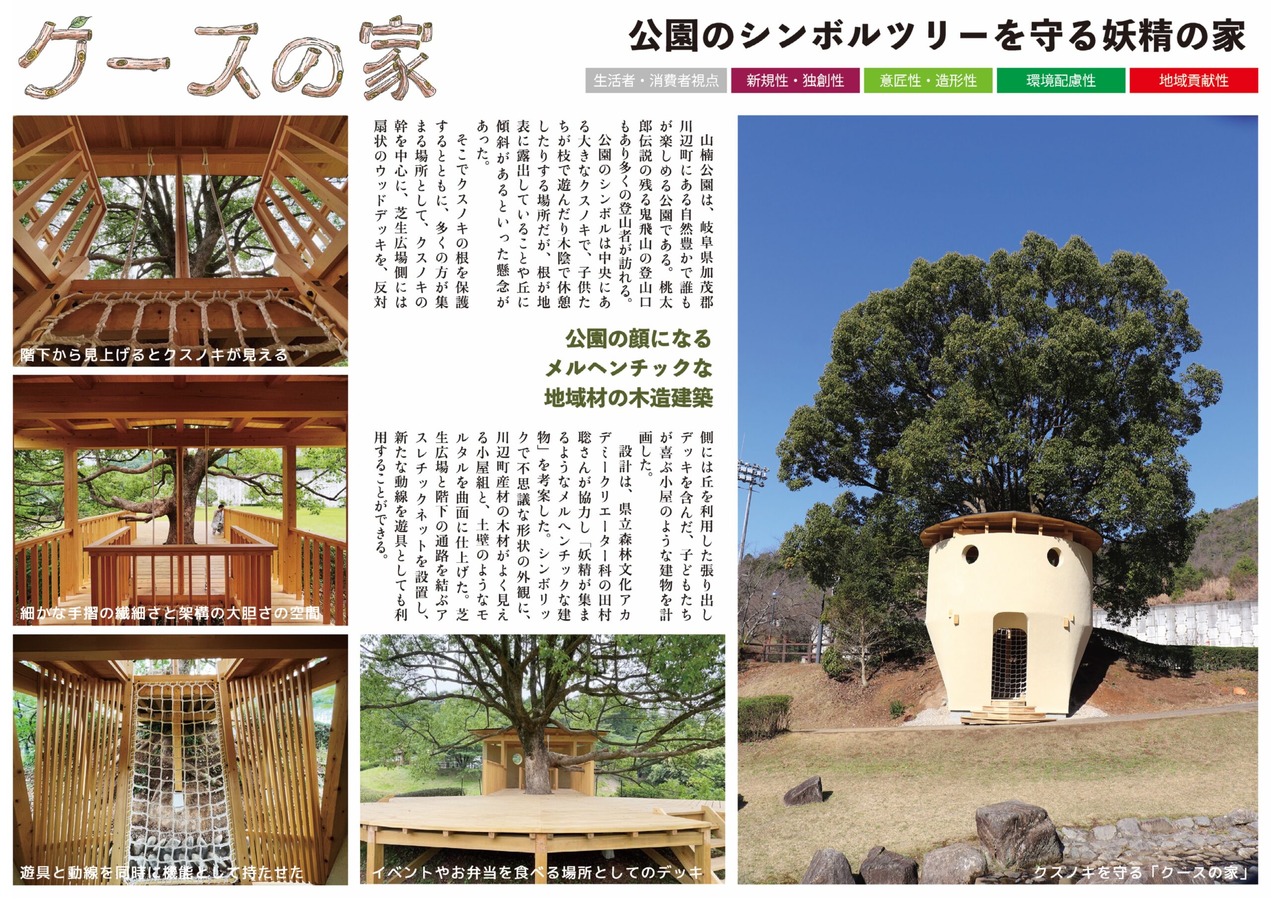 「クースの家」は岐阜県加茂郡川辺町にある山楠公園に建設した木造のデッキハウスです。