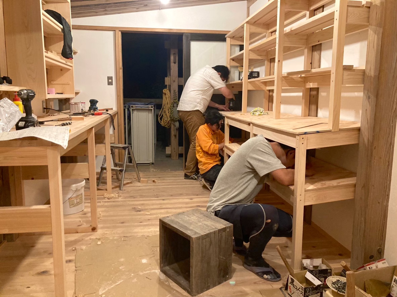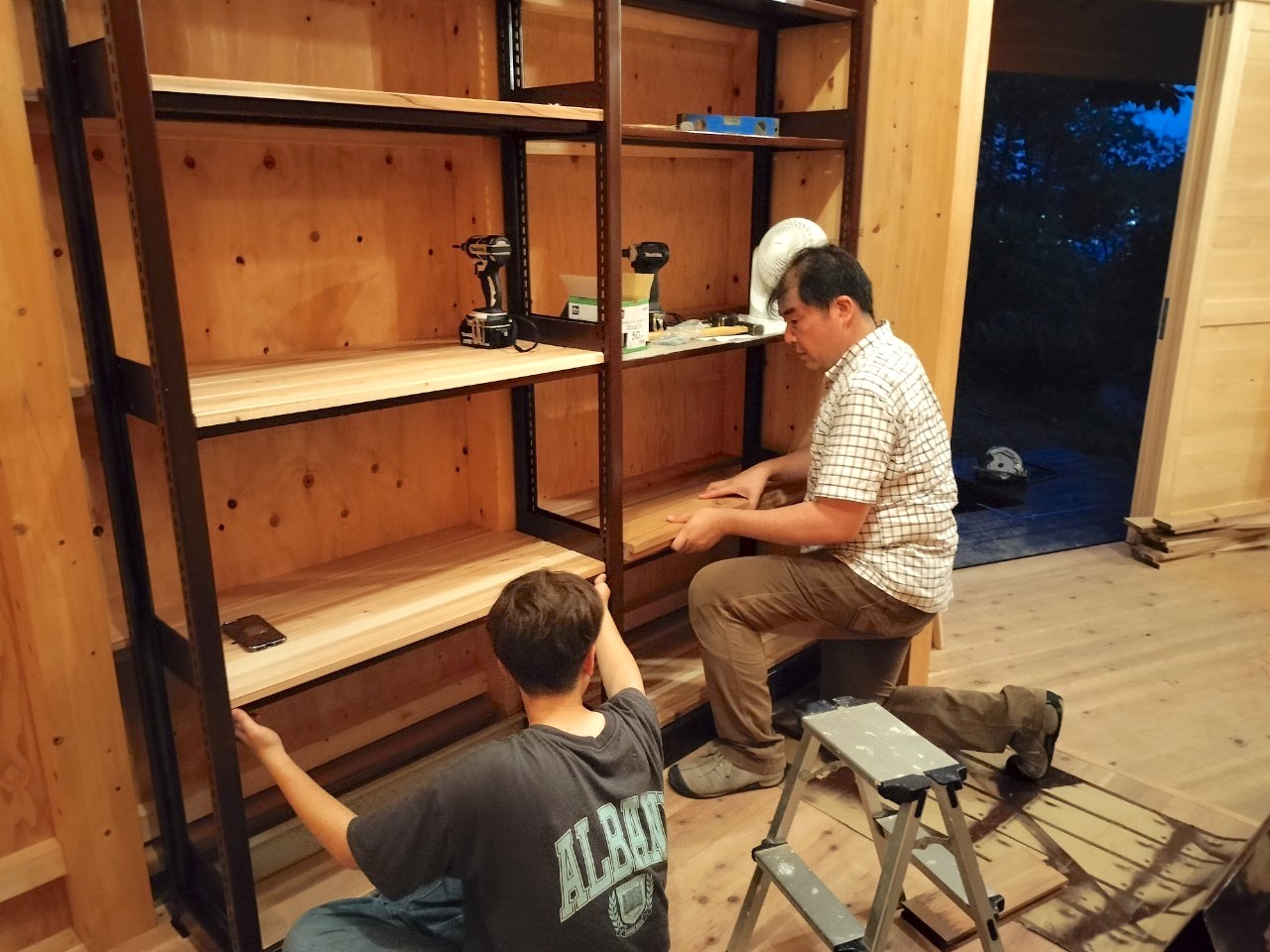 自力建設において、最後の仕上げとなる棚の作製を行いました。