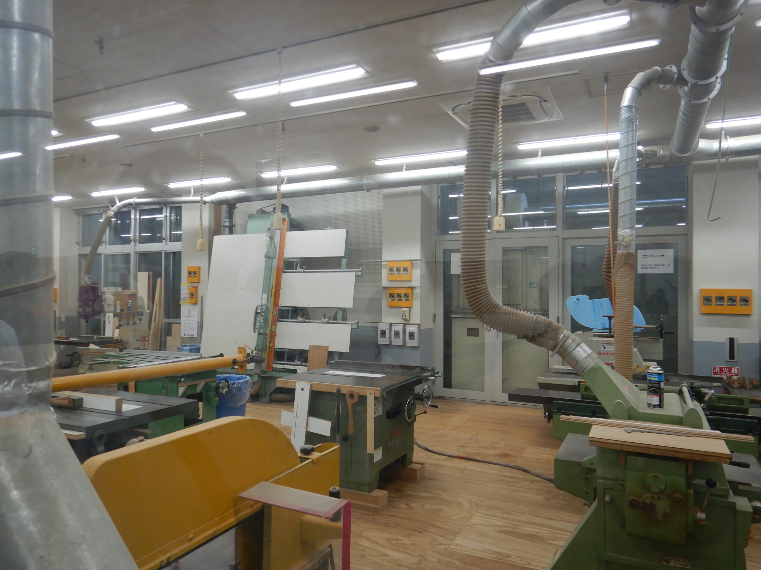 フォーラムの後には、中央工学校の木工房(4号館地階)の見学ツアーがあり、参加させてもらいました。