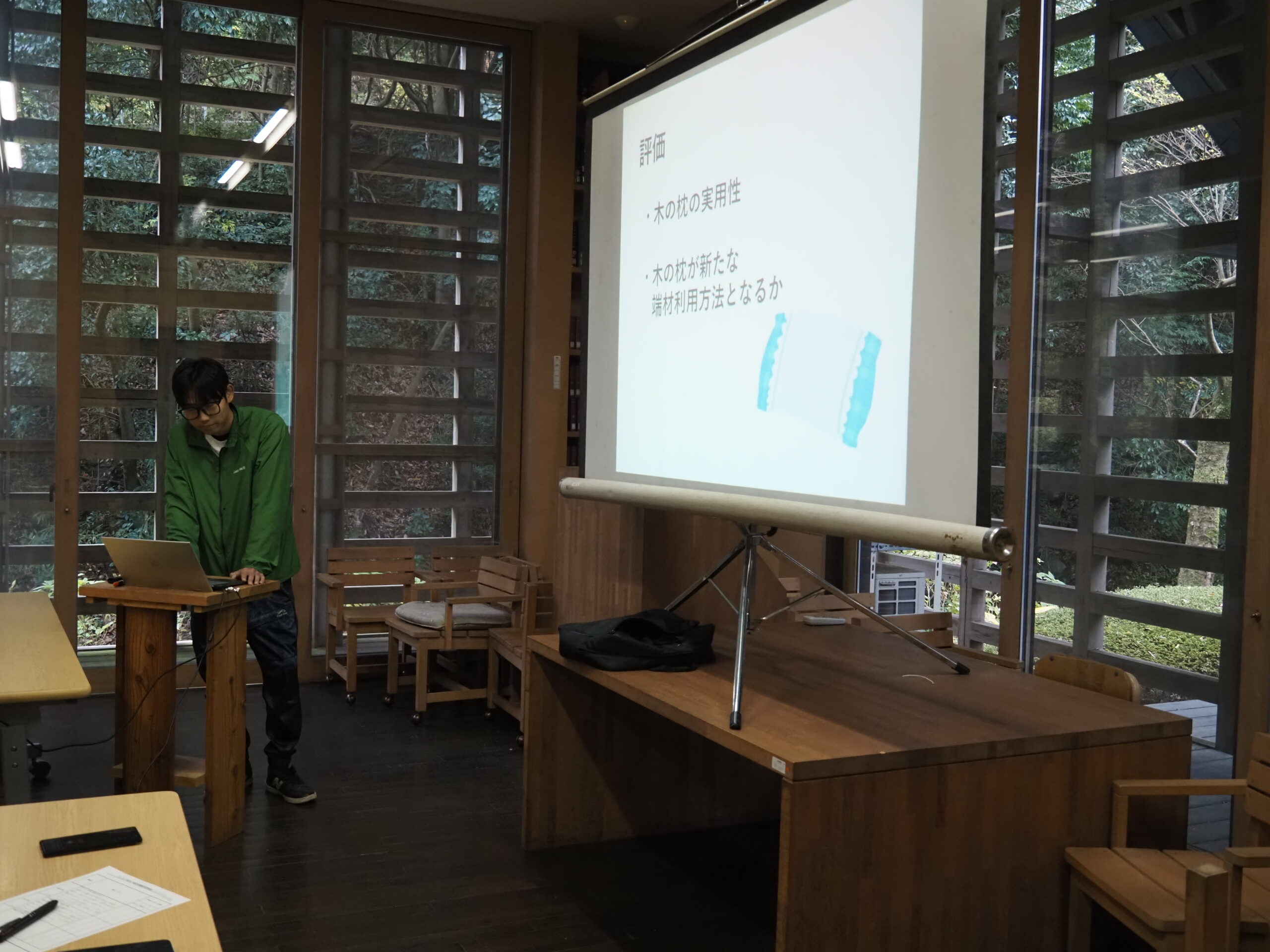 今年の林産学コースの学生は3名、どれも個性的な発表内容でした。
