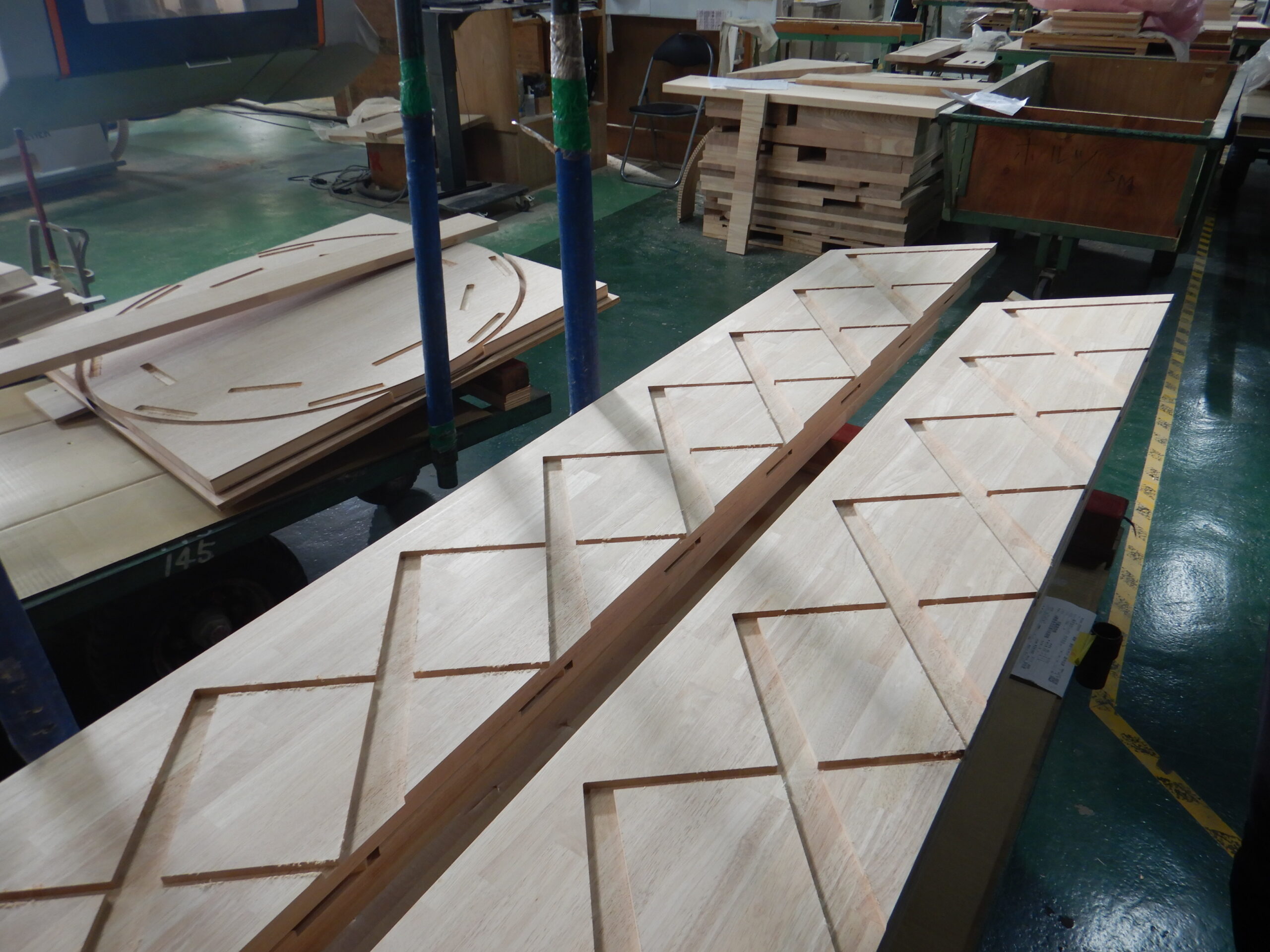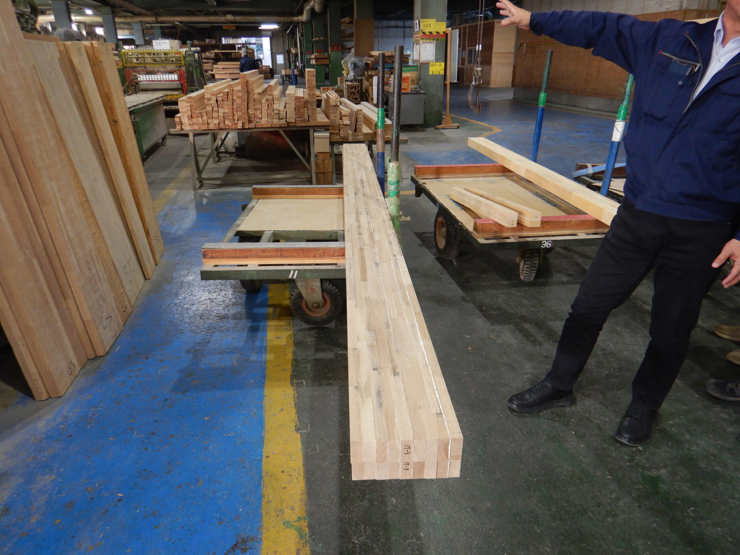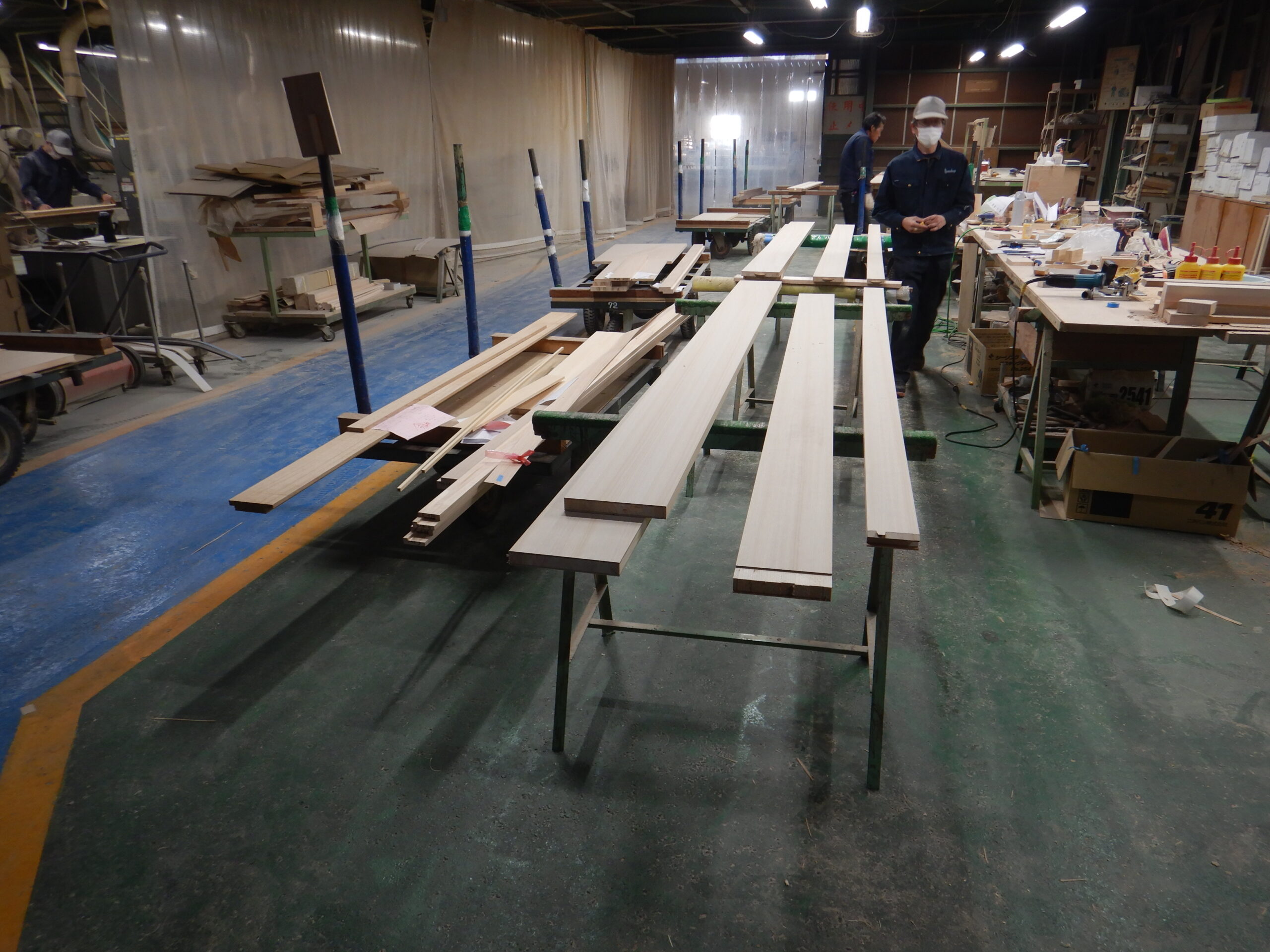 同社で取り扱っている造作用集成材(フリー板)は海外からの輸入が主だそうですが、樹種やサイズによっては現在でもフリー板の特注作製を行っているそうです。