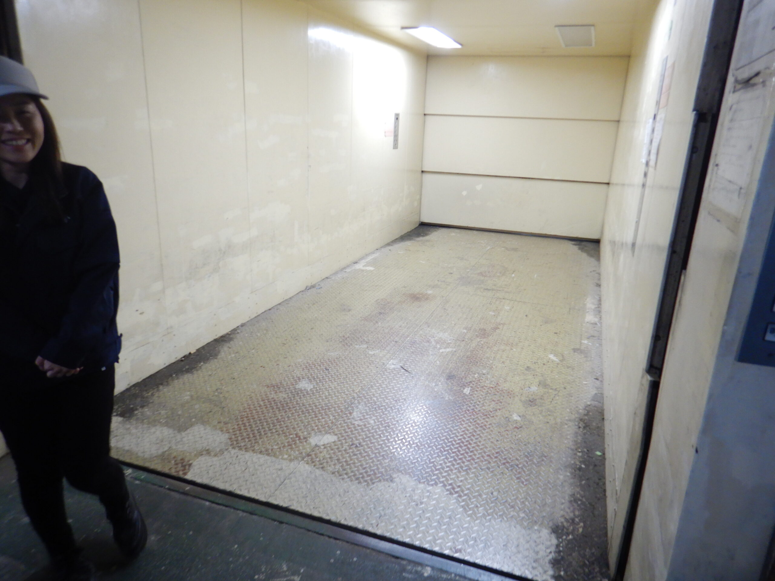 個人的に驚いたのが、4階建ての工場棟にある巨大なエレベーター。リフトも乗れるそうです。