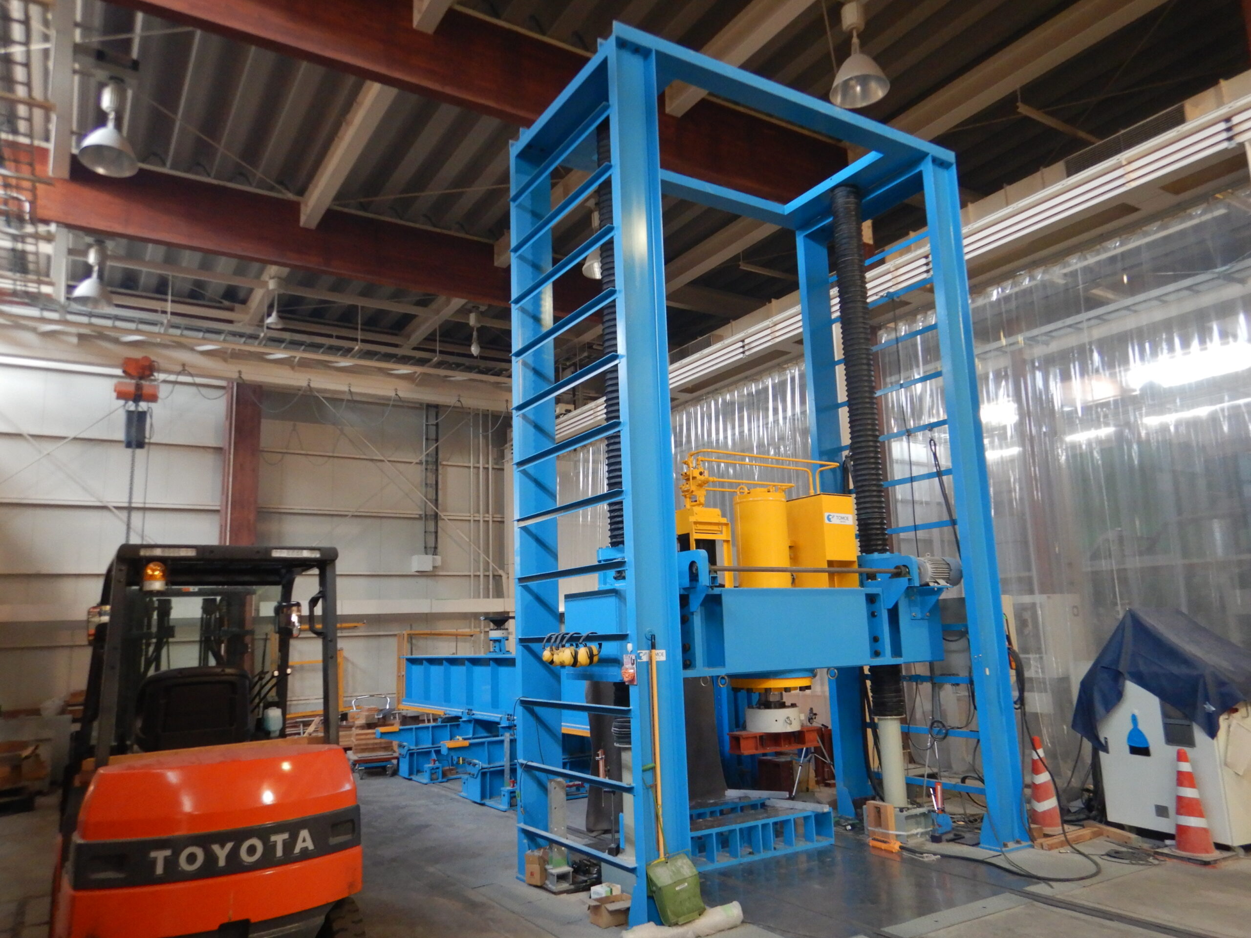 こちらの実大試験機(容量、曲げ:500kN、圧縮・引張:1000kN)は、試験体長さ12mまで対応してます。