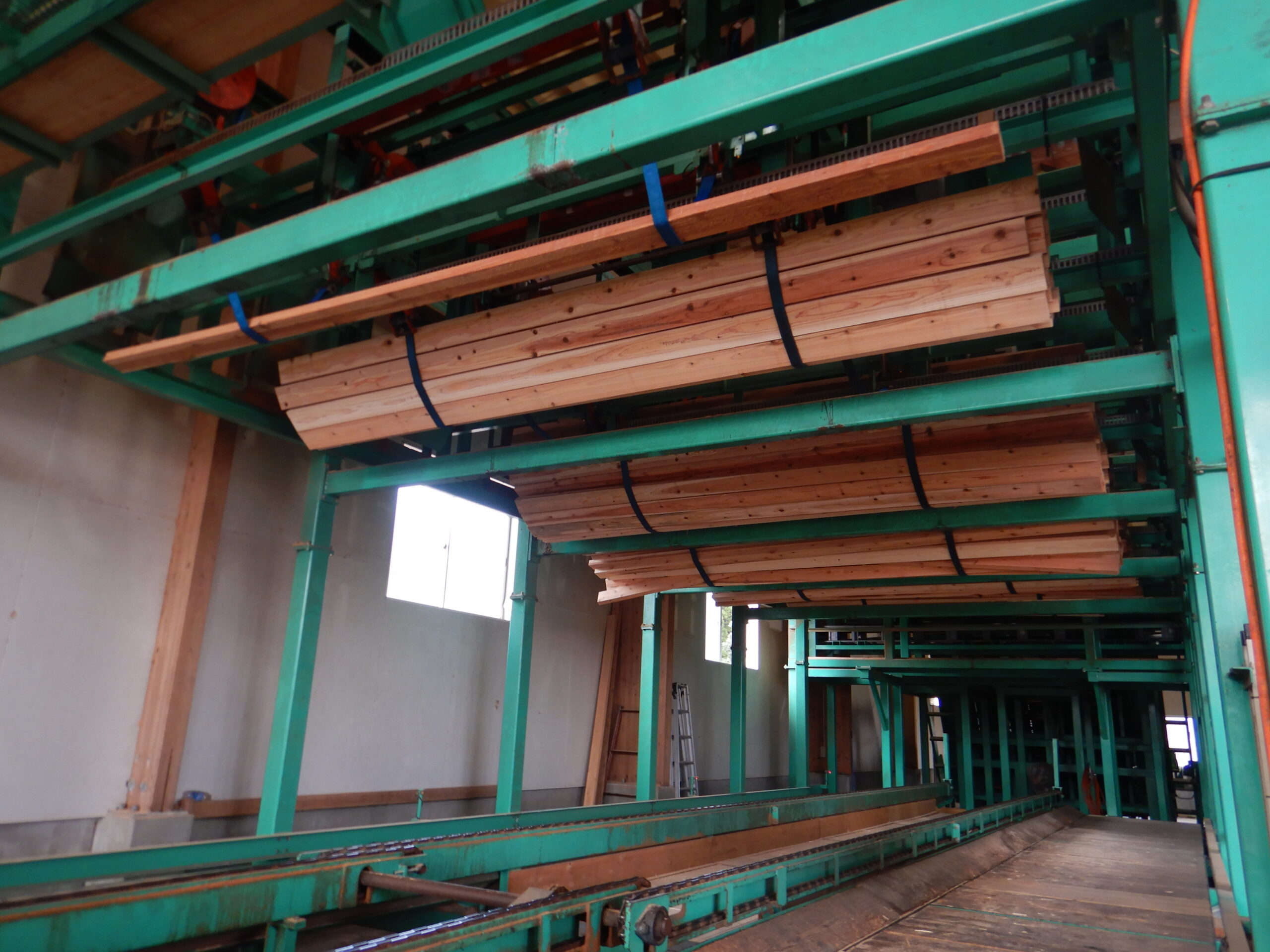 モルダー加工のラインも乾燥材(KD材)とグリーン材に分かれていました。