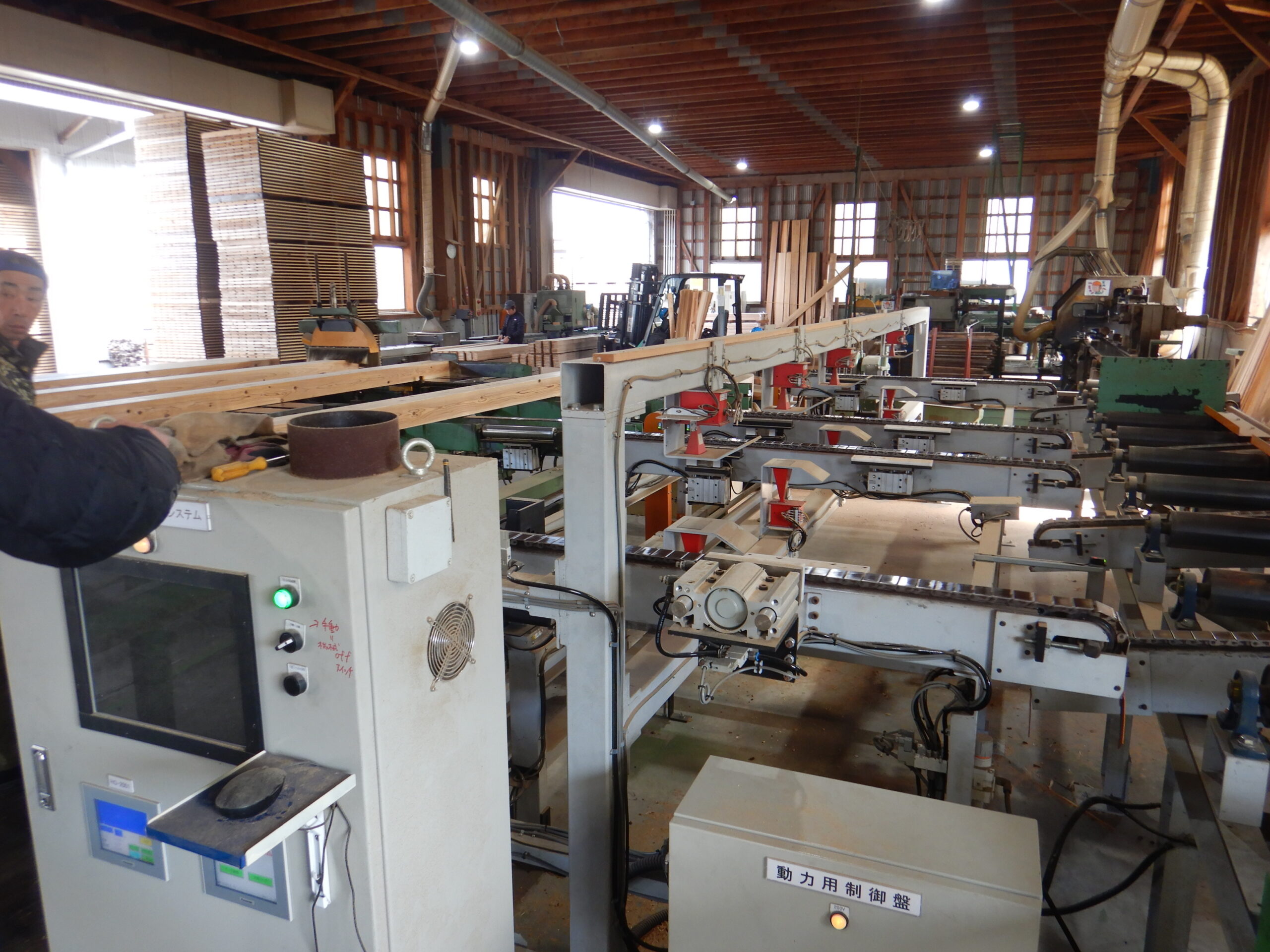 木取りは自動で行い、歩留まりよくあらゆる寸法の製材が生産されています。