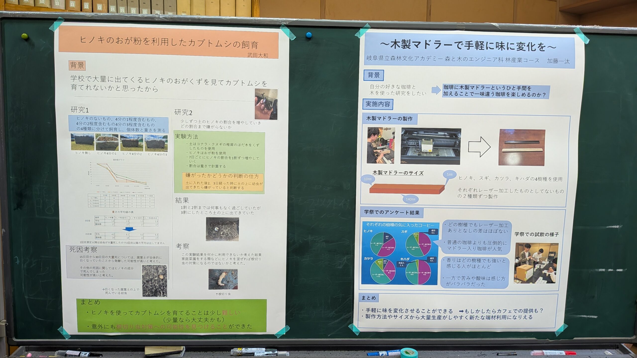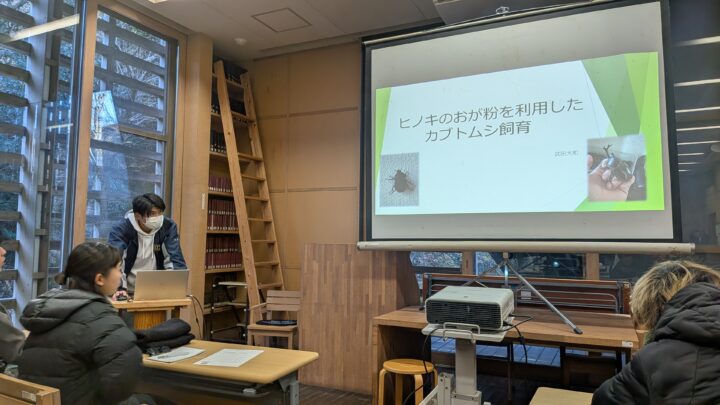 3人目の発表者はカブトムシの飼育が趣味という武田大和さん。「ヒノキのおが粉を使ってカブトムシを育てれるか」という課題に取り組みました。