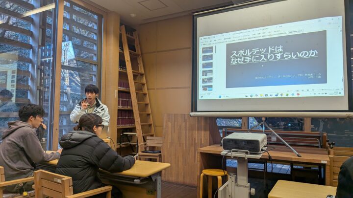 この授業は林産学コースの必修科目で、学生自らがテーマ(課題)を考え、研究を進めます。
