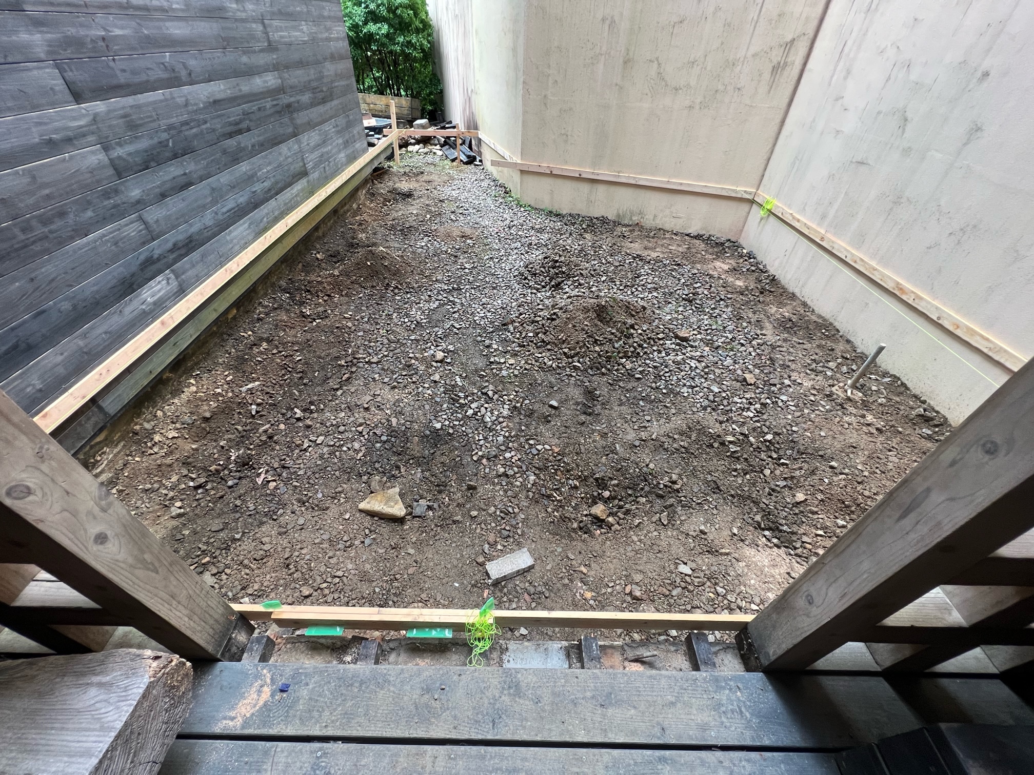 既存建築物に囲われた敷地のため余分にスペースが取れず、板を直接打ちつけています。