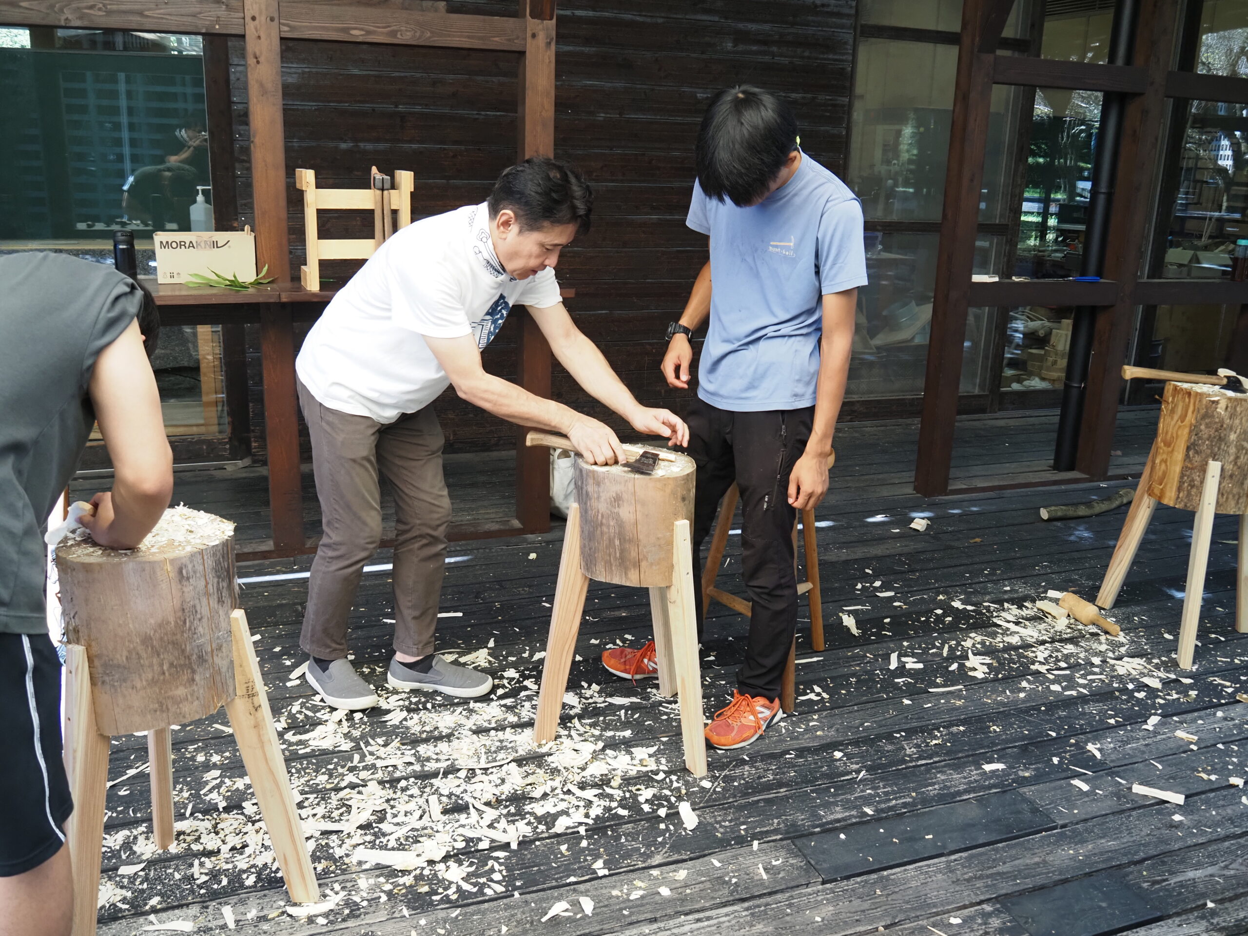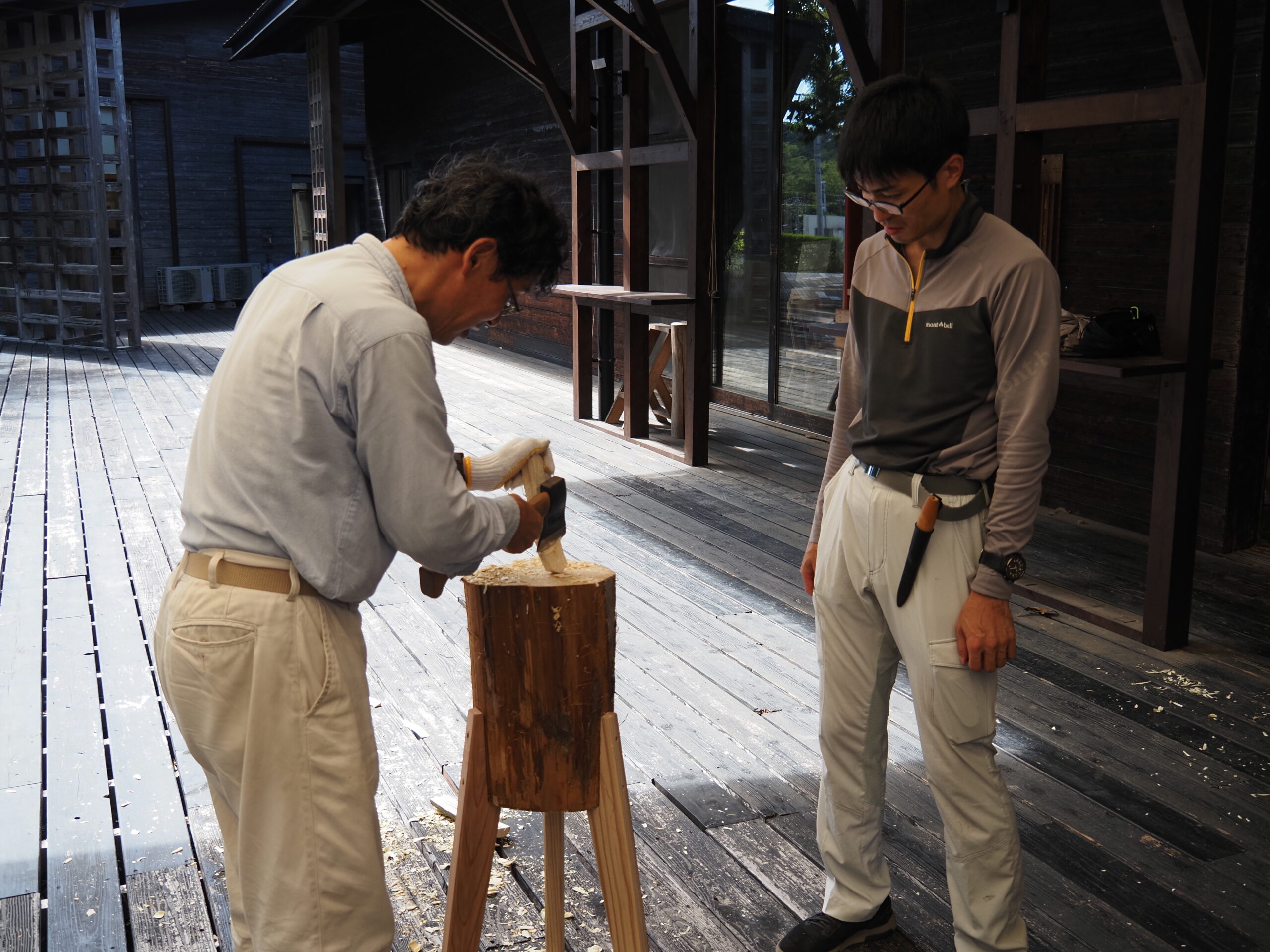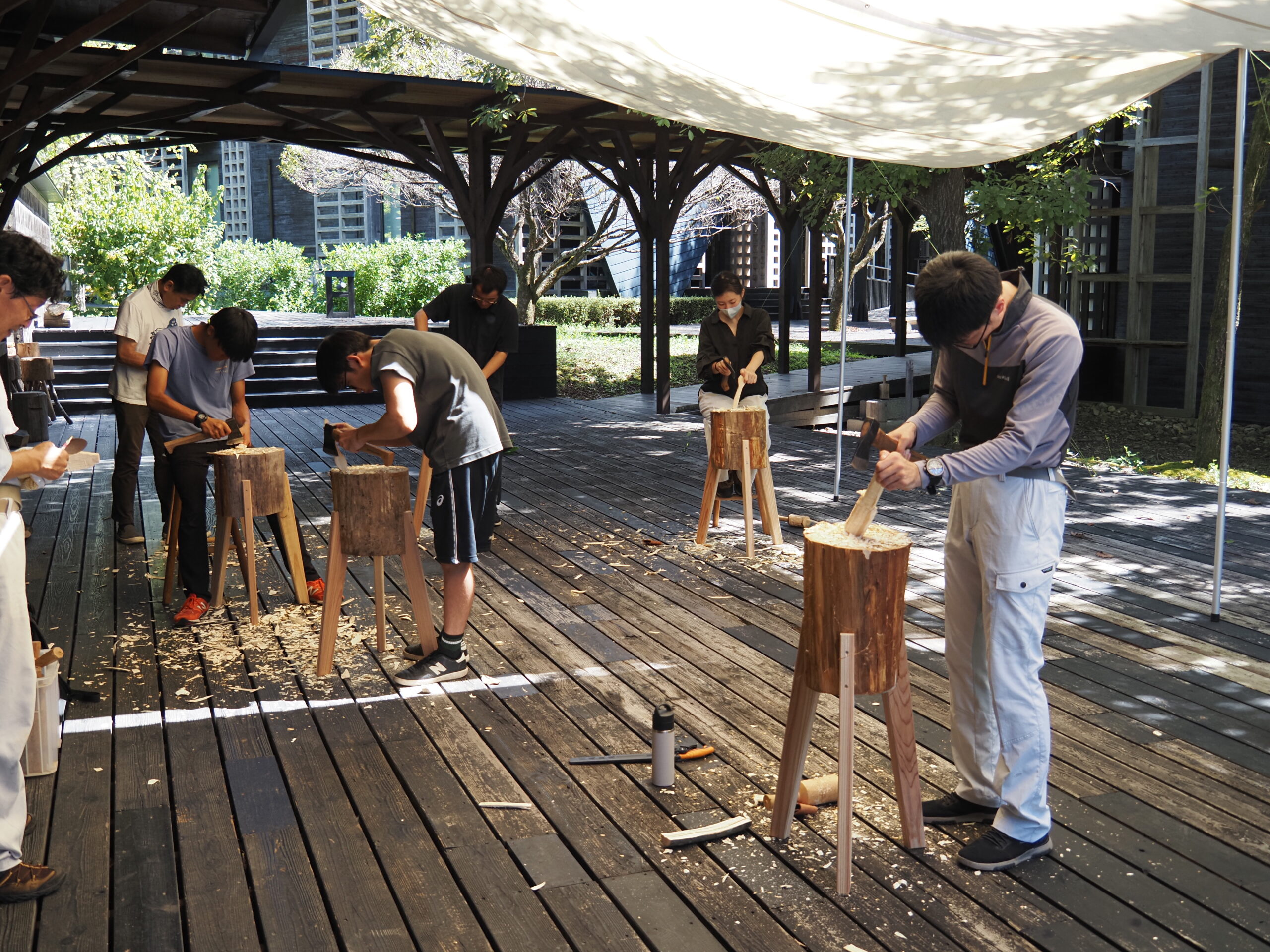 この授業はグリーンウドワークの専門家である久津輪先生(木工専攻教授)の指導の下で実施しています。