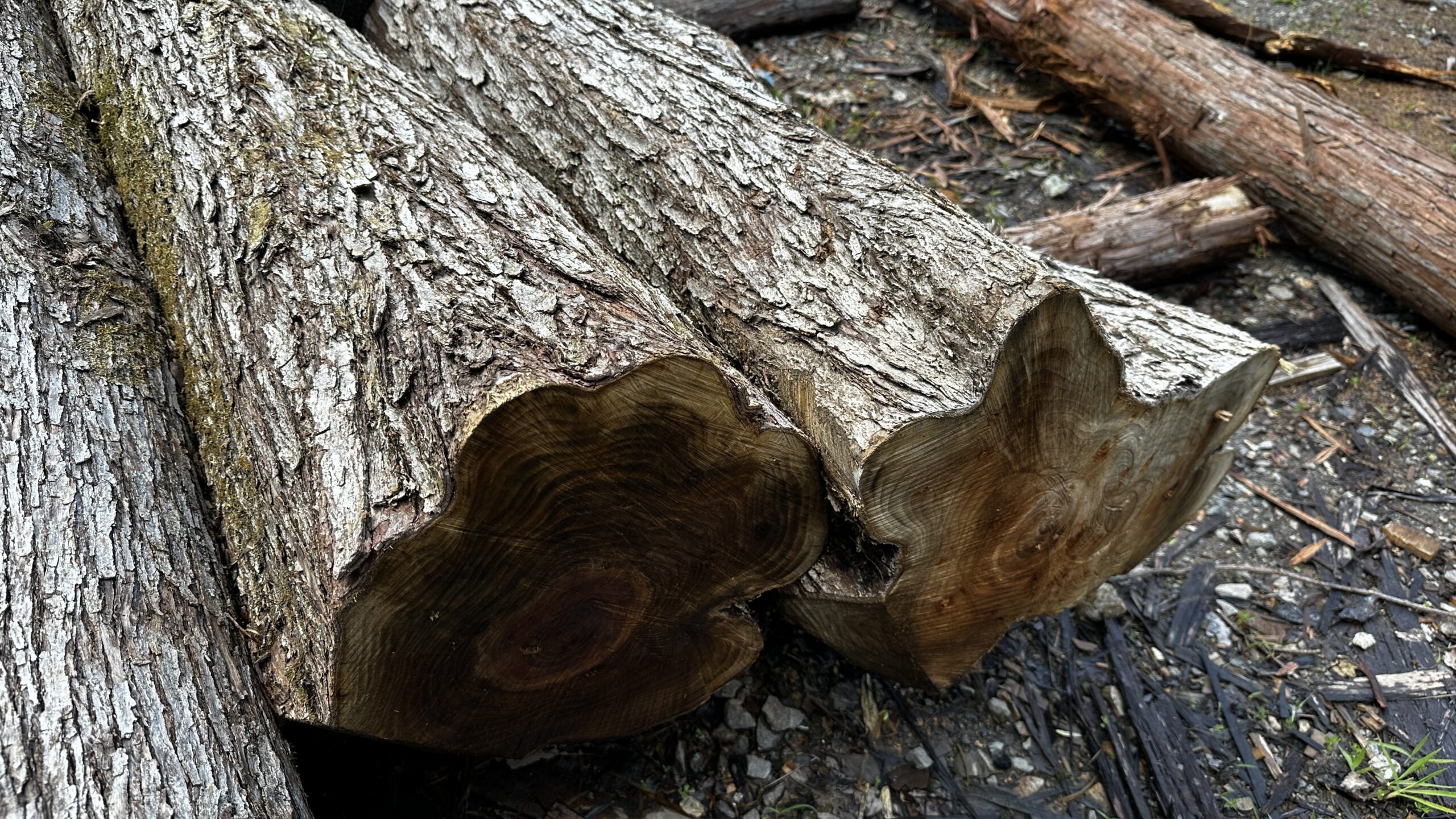 2022年12月に林業専攻の池戸先生(2023年に退官されました)より、アカデミー学内のカツラの伐採計画があり、木工専攻で材として活用できないかとお話しいただきました。伐採することになったのは根が水道や電気の配管に入り込んでしまうなど、やむを得ない事情の為でした。