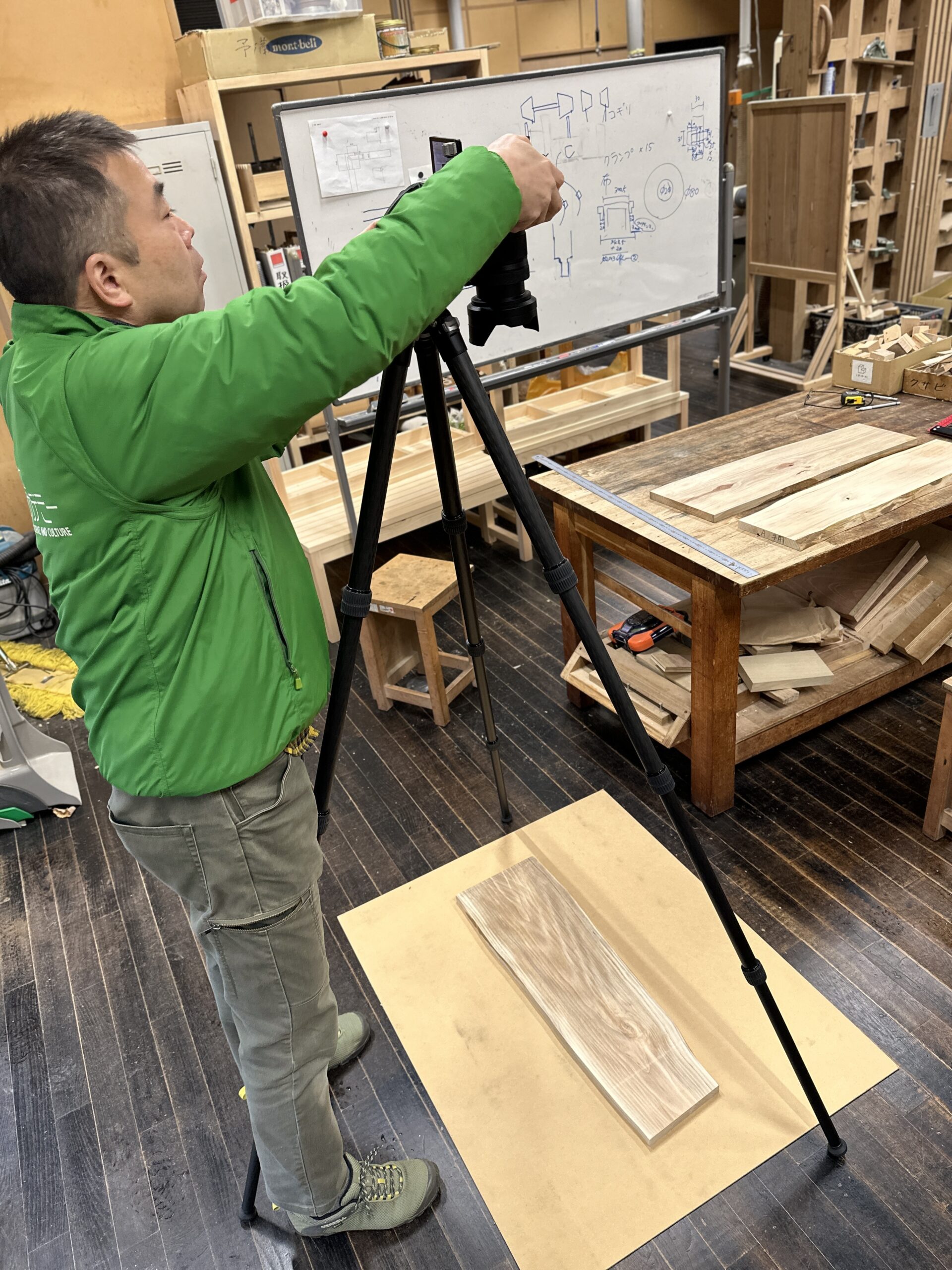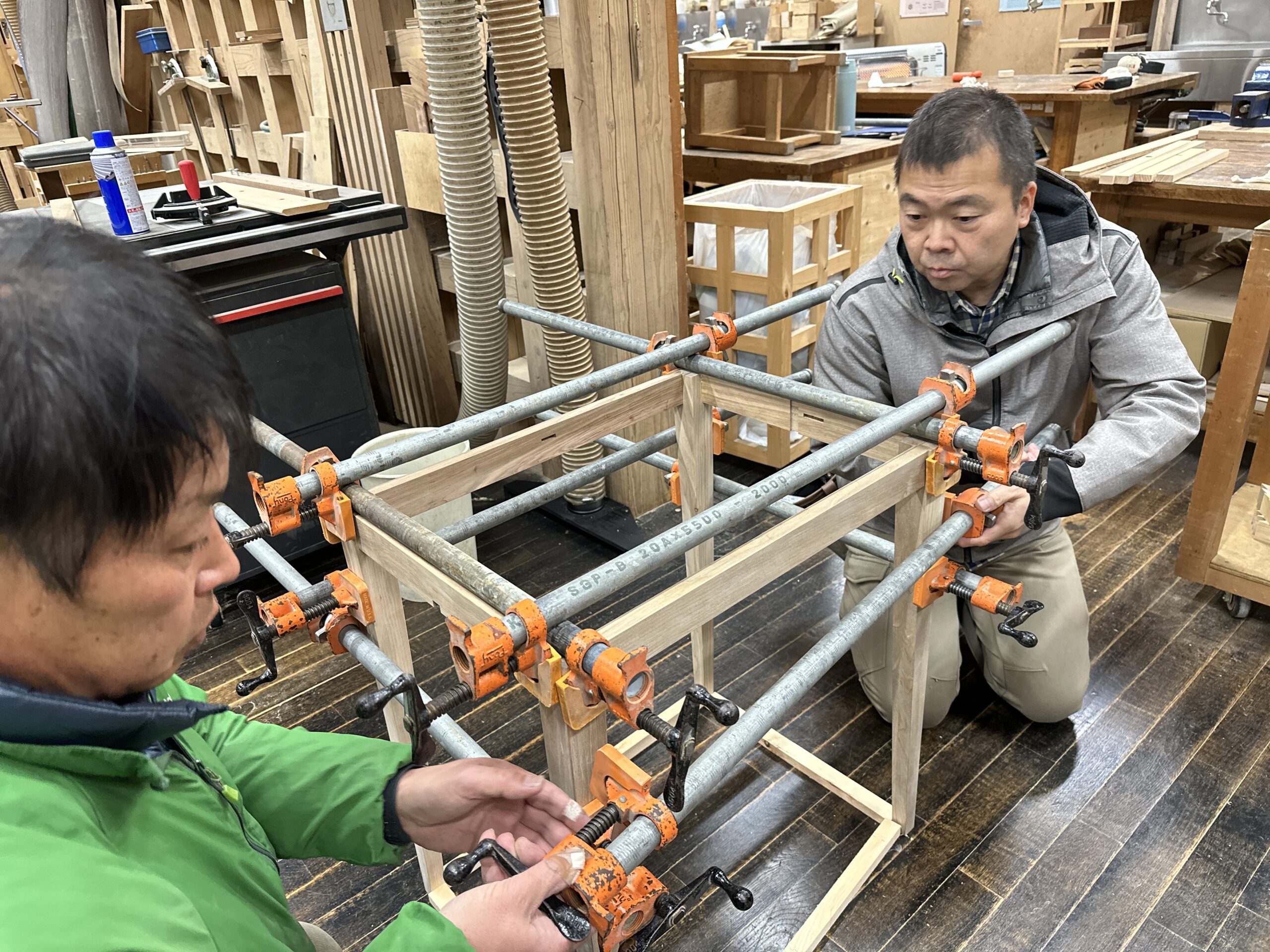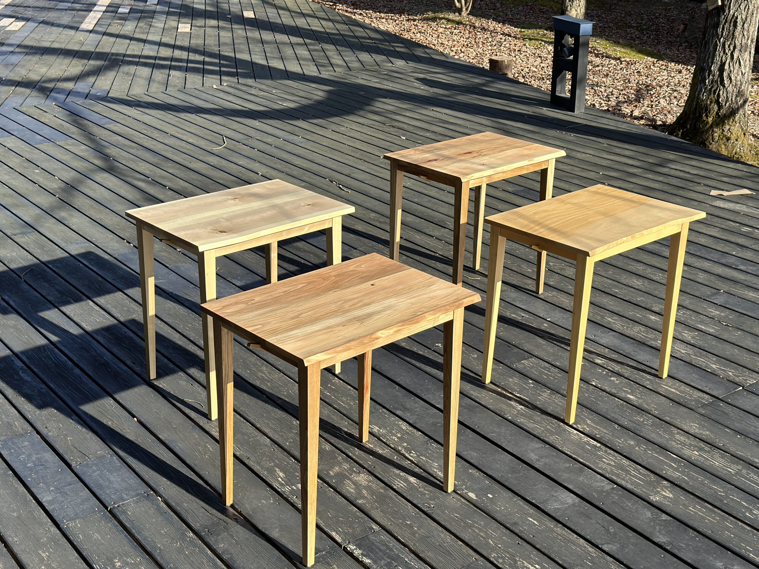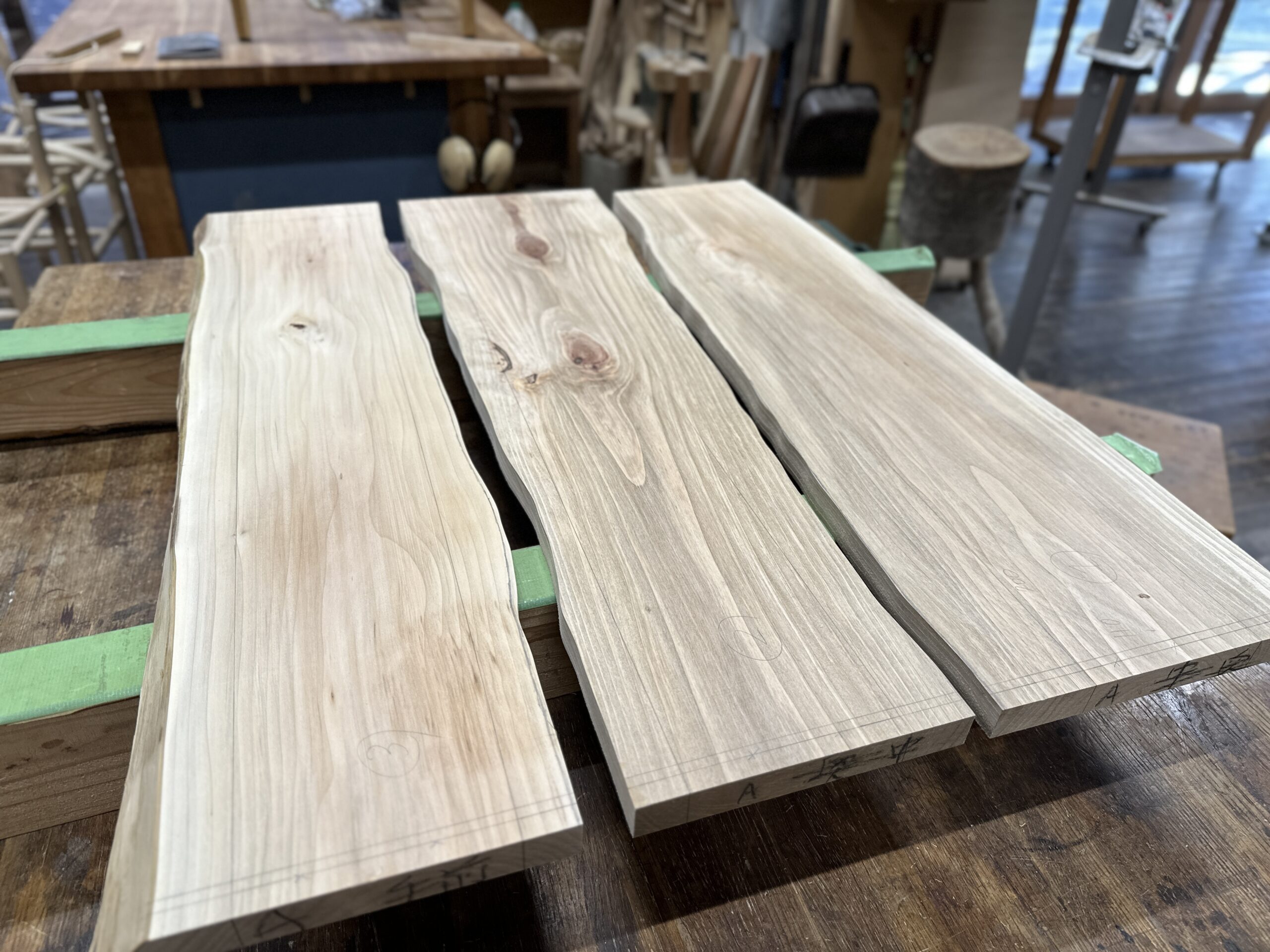 今回は学内のカツラ2台(内1台はCNCルーターによる矧ぎ合わせ)、ホオノキ、イチョウ各1台の4台の机を製作しました。